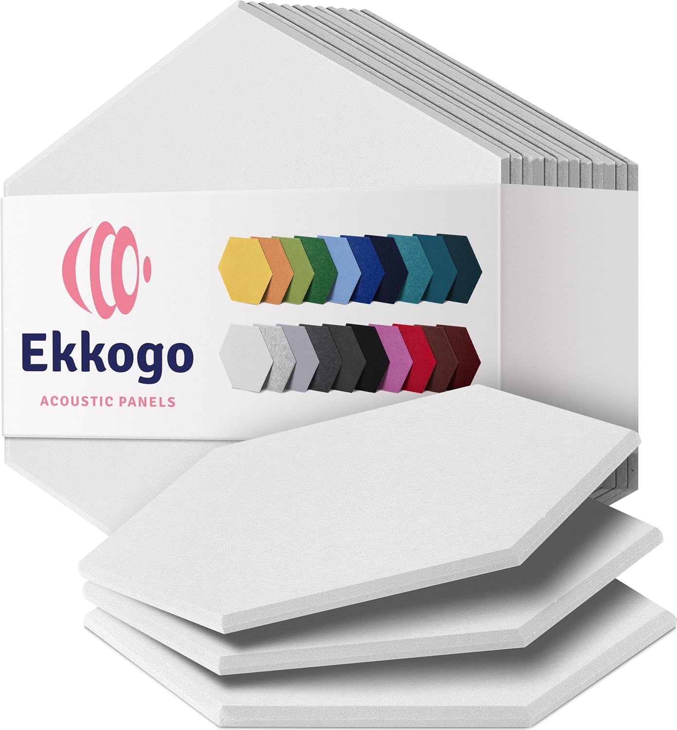 Acoustic Panels - 12-Pack Soundproof Wall Panels, 12"X10.4"X0.4", High Density Sound Dampening - White Hexagon