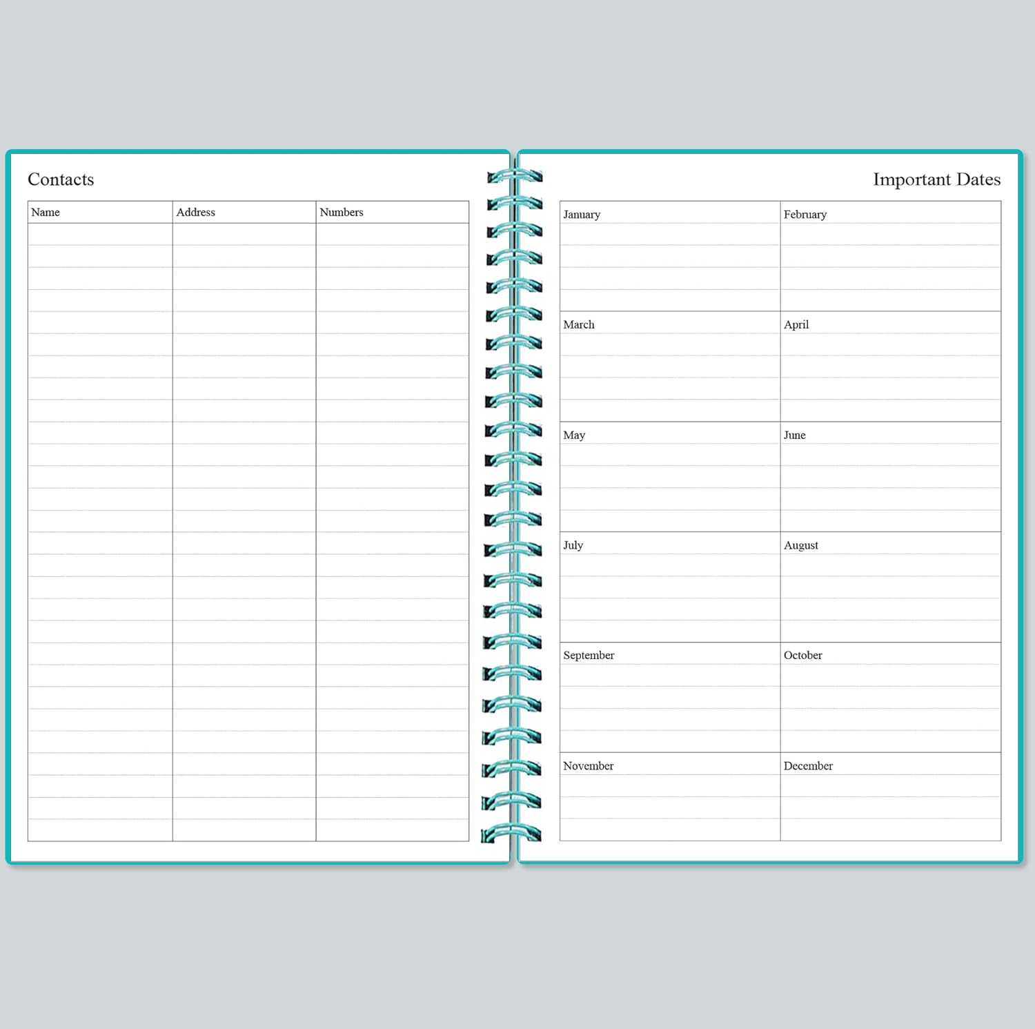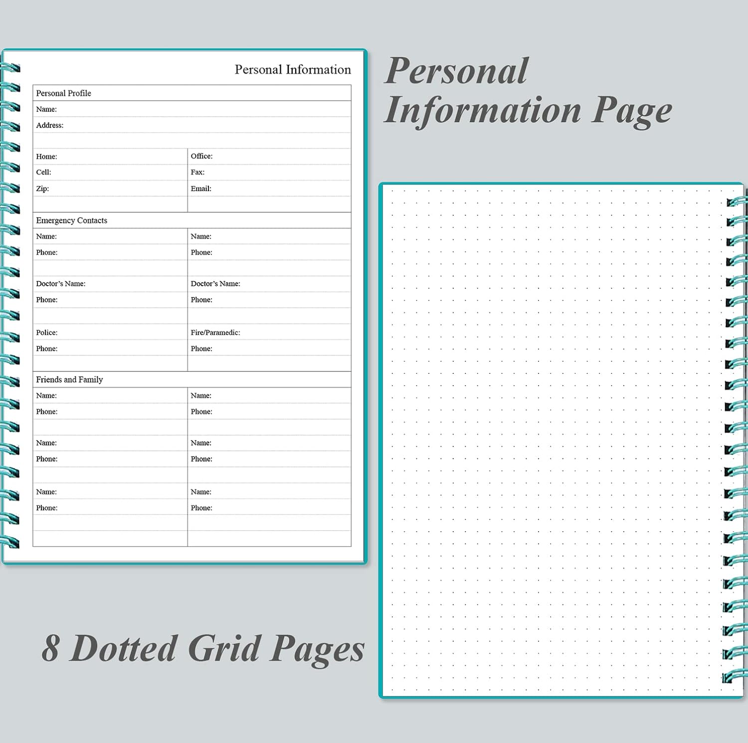 - A5 SIZE - This undated daily organizer size of 8.5 x 5.8 inch, perfect size to fit in your bag.1 quick reference page, contact pages, important dates page, and 75sheet (150 page) daily plan & notes,8 dotted grid pages, Undated appointment planner makes it easy for you to start the planner at any time.
