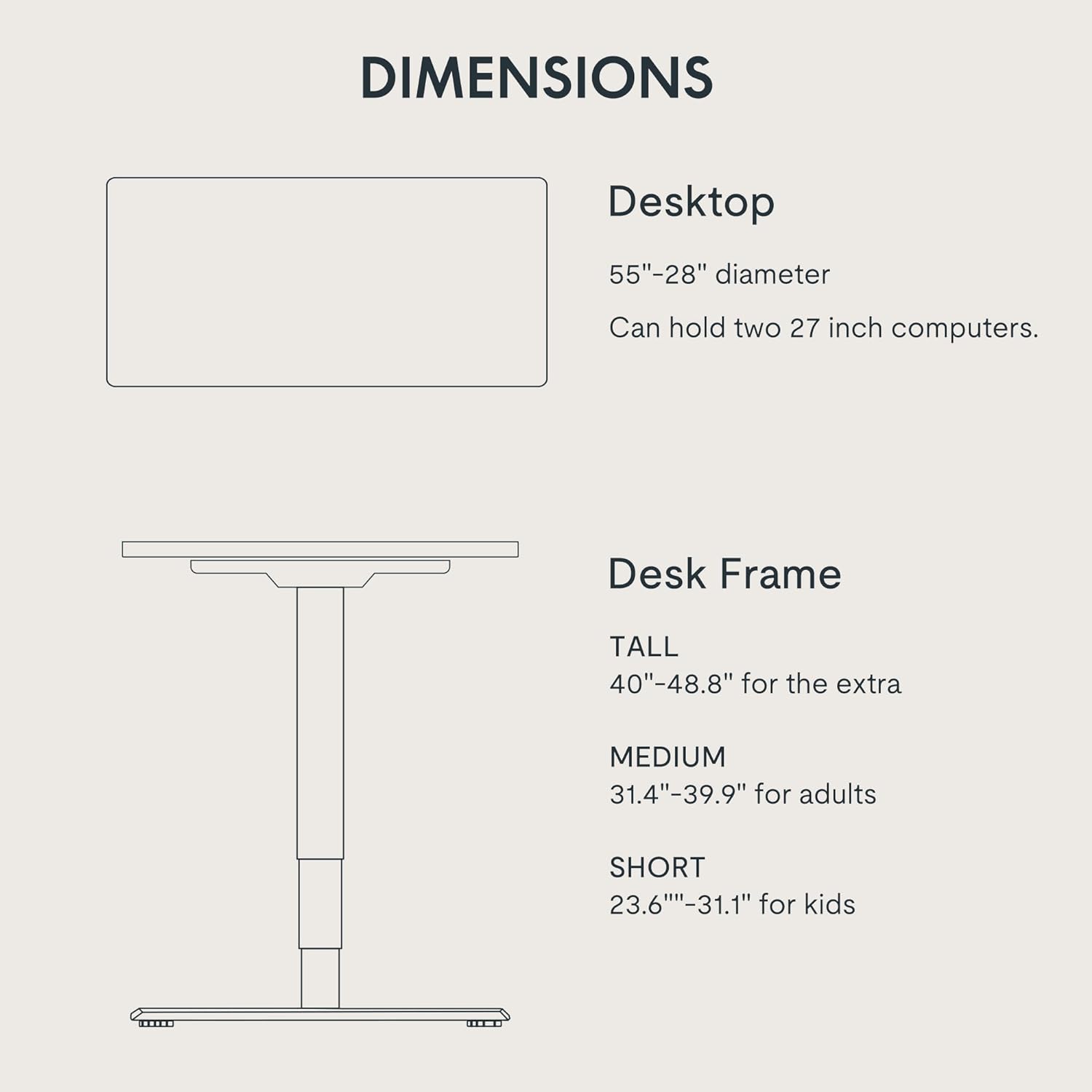 - ă3-STAGE LIFT SYSTEMă Compared to the 2-stage lift system, the 3-stage standing desk offers a 30% wider range of lifting space, from 23.6â to 48.8â. Whether it's a 3â2â child or a 6â5â adult, you can adjust the desk height to suit everyone comfortably.