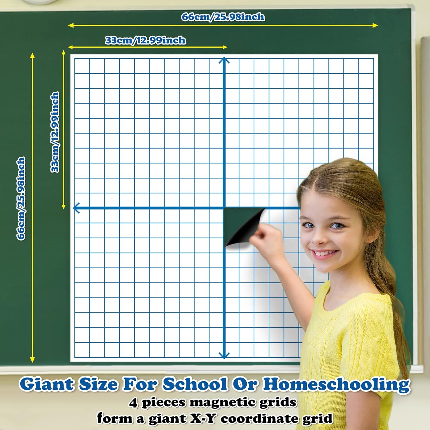 - 【26"x26" Large Size】4 pieces 13"x13" magnetic grids form a complete 26"x26"X-Y coordinate axis, represents quadrant I, II, III, and IV, each grid quadrant has 100 squares and offers plenty of space for graphing and plotting, bold X and Y axes can be seen clearly from a distance, great for teachers to interact in class and visualize graphing and practice math problems, which make teaching easier and more efficient