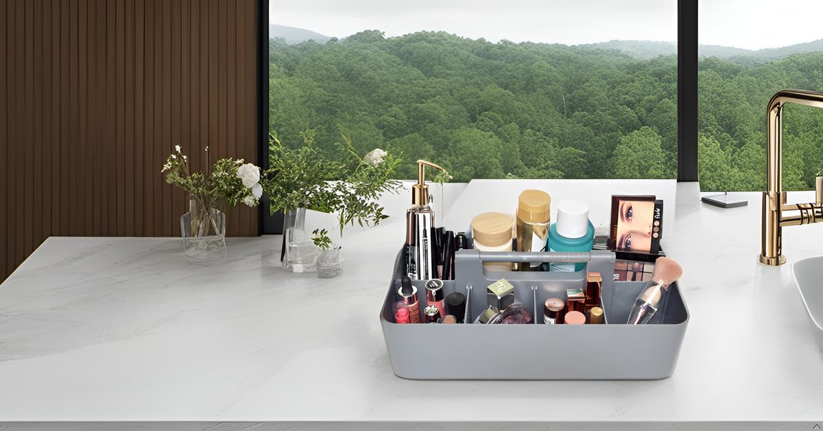 - PORTABLE: Feature easy-carry round smooth handle to make it simple to transport goods from shelf to cabinet or desktop; Just grab and go; The perfect storage and organizing solution for modern living spaces; Open tops and divided compartments make it easy to see what is inside and quickly grab what you need; Use these convenient storage bins to keep office desk items all in one place; Great for children's crafting items and school supplies too; Perfect for home or commercial workspace