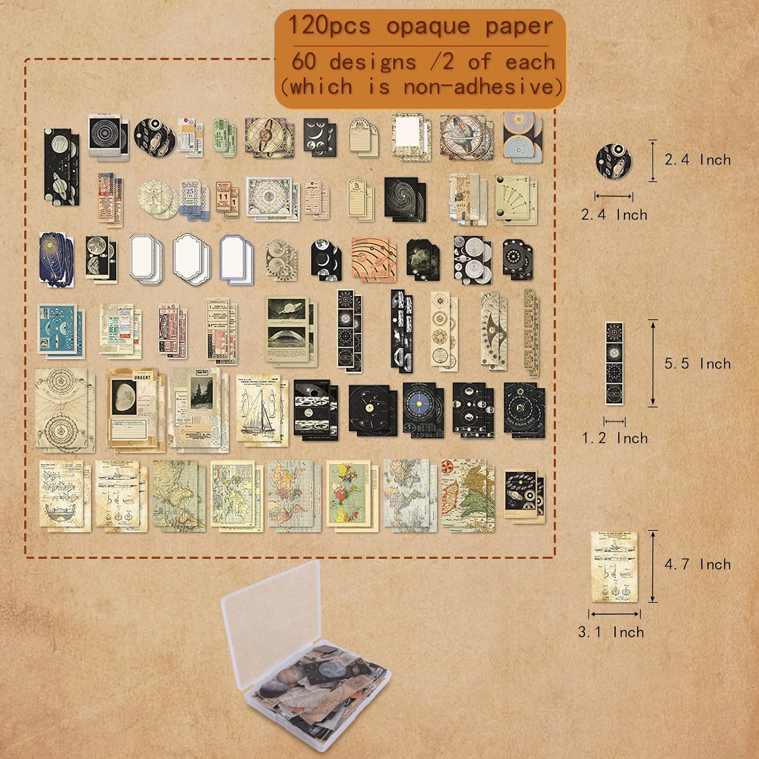 - ăVintage Ephemera PackăTotal 200pcs vintage stickers for journaling including 80pcs translucent washi stickers and 120pcs opaque matte paper, they have 100 different styles, each pattern with 2 pieces, which can meet your journal and collection needs, you can also share with your family members and friends.