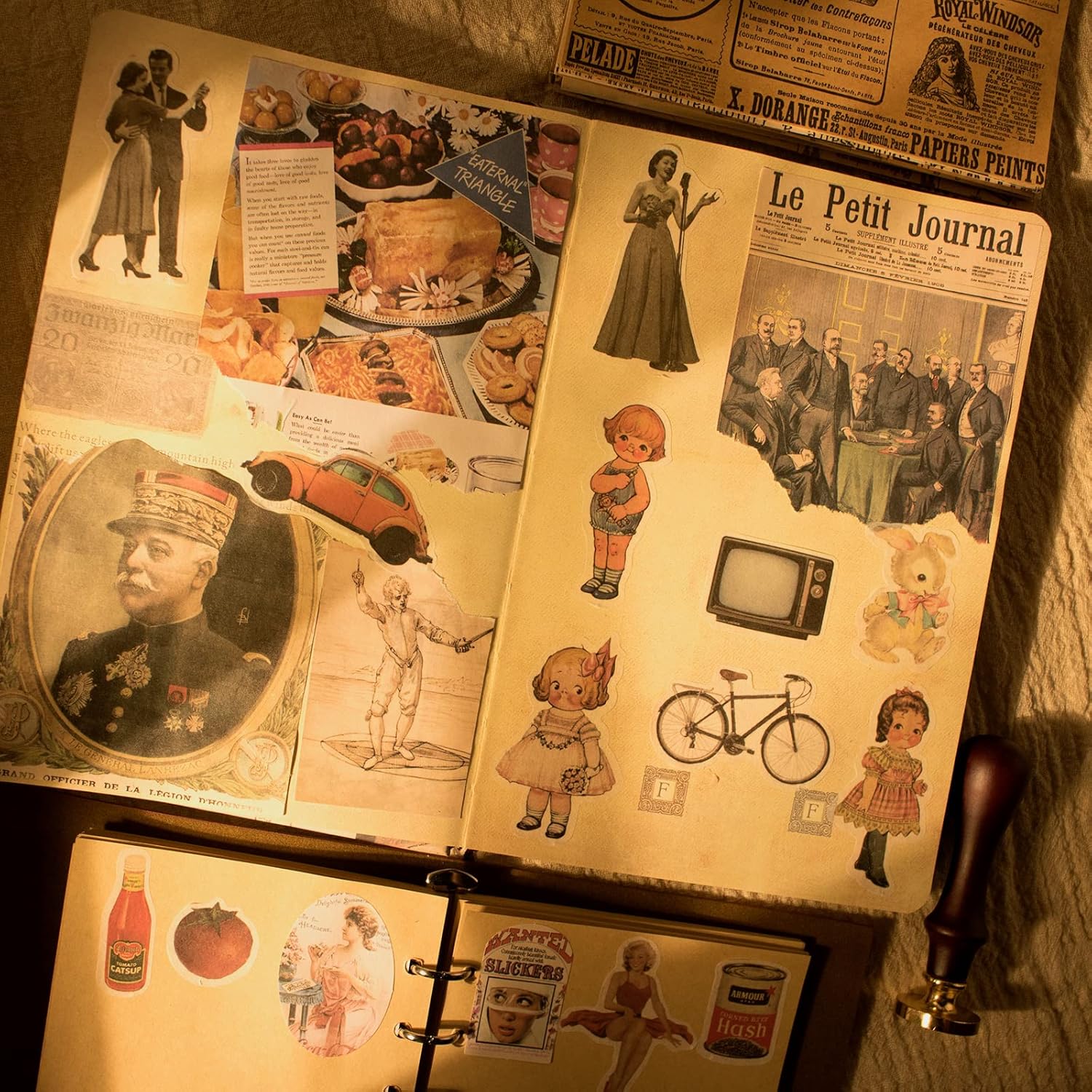 - ăVintage Themesă200 Pieces vintage items and people paper & stickers,including old newspaper articles, receipts, old cars and bikes, tickets, celebrities from the past and more. Great for junk journaling, scrapbooking, collage or retro-themed art projects!