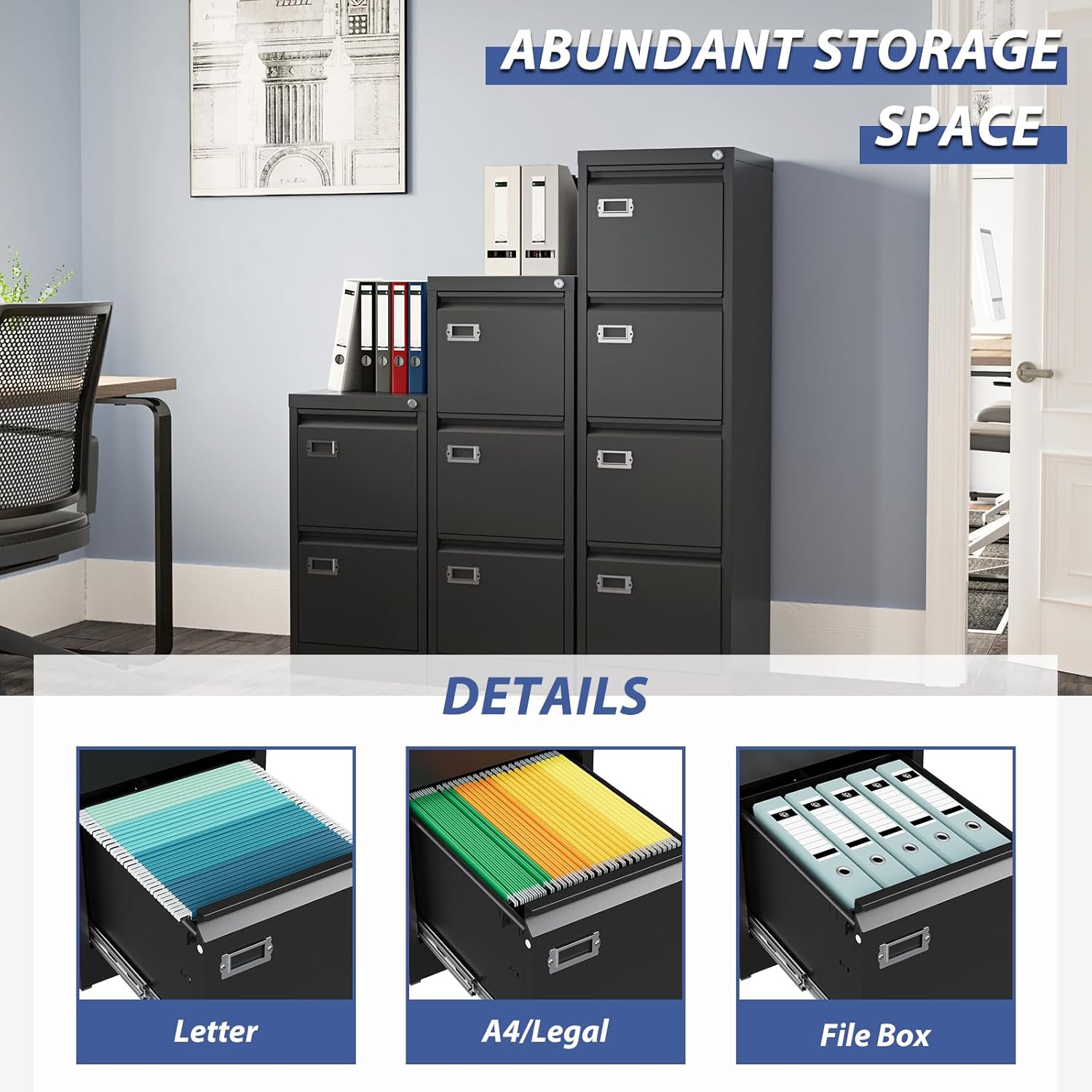 - ăAnti-Tilt DesignăThis office file cabinets has a lock that can lock all four drawers and comes with two keys. It helps you keep your valuables and documents safe. In the unlocked state, only one drawer can be pulled out at a time, preventing the movement of multiple drawers causing the overall center to shift and the box to fall.