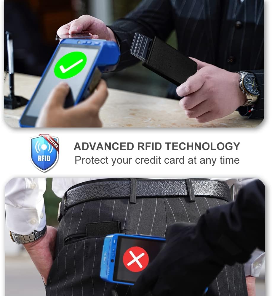 - [Magnetic Closure]-Cartera wallet card holder is made of high-grade aluminum alloy box + high-grade leather, With 4pcs Strong Magnets, better than normal card holder, so that the card holder will not open when closed,edge Wallet Cartera de Hombre.The ultra-thin wallet is designed to fit directly in the pocket for easy carrying, and the leather wallet can be used to store cash.