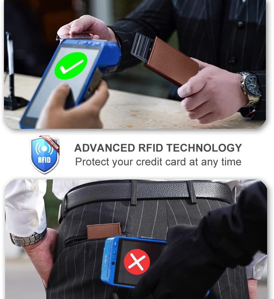 - [Minimalist and Smart]-Credit card holder package supports RFID cards and various types of cards. It can hold up to 8 cards, which is very suitable for business cards, credit cards, driving licenses, etc. It is simple and stylish and easy to carry.