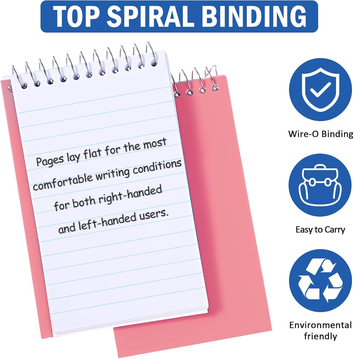 - Top Bound Design: unlike other common note pads, our memo pads notebooks have the spiral design at the top for easy access of sheets inside, which will also allow you to put them in your backpack, pocket, handbag or purse at the same time; And the flat pages can provide more comfortable conditions for right and left handed users, satisfy your multiple needs