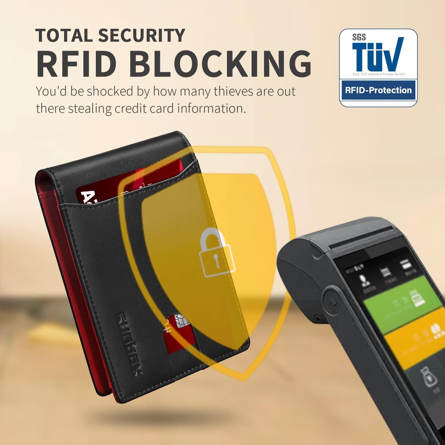 • RFID Blocking - This wallet for men are designed by German designer, made of genuine leather material, durable, wear- resistant and scratch-resistant. Our wallets block the 13.56 MHz band and protect against data theft by RFID scanners