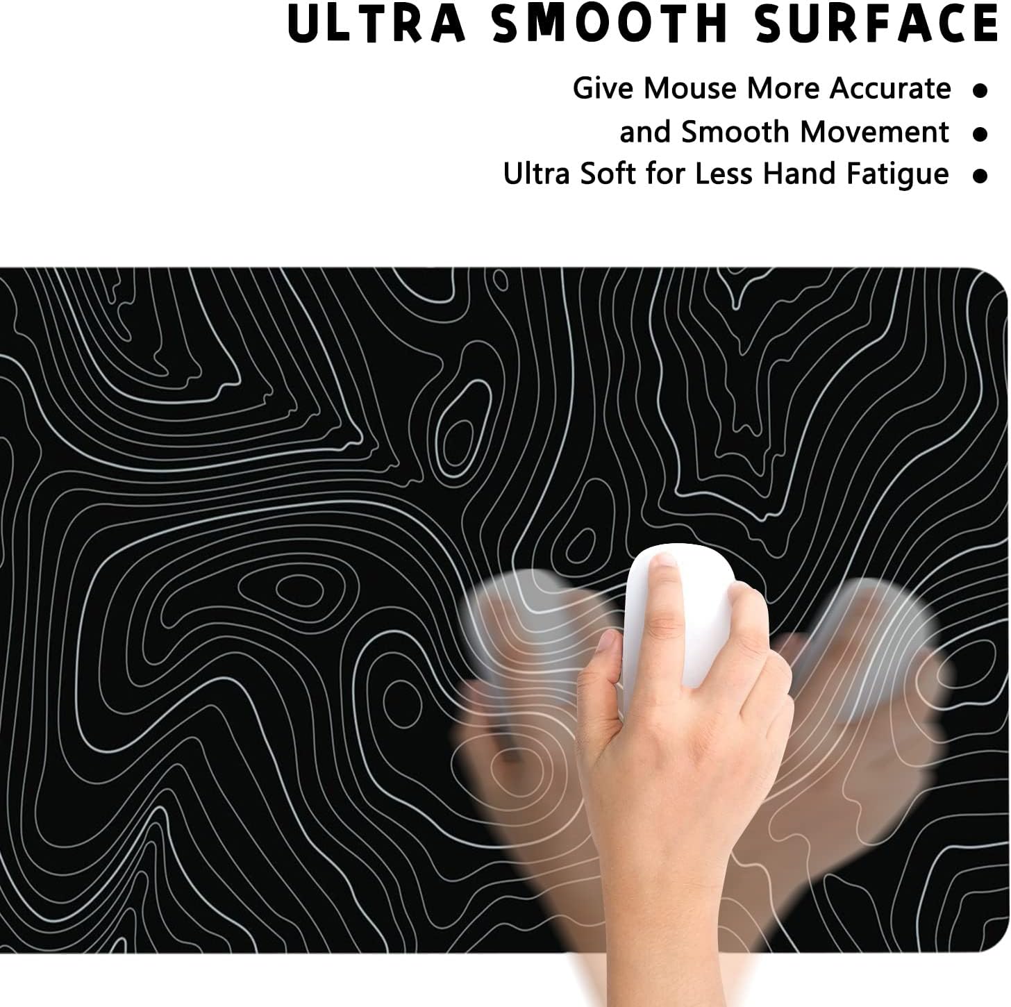Desk Mat, Topographic Map Lines Pattern Large Desk Pad Extended Gaming Mouse Pad, 35.4 x 15.7inch Mouse Pad with Non-Slip Rubber Base Stitched Edges, Home Office Decor for Women Girls Men Boys