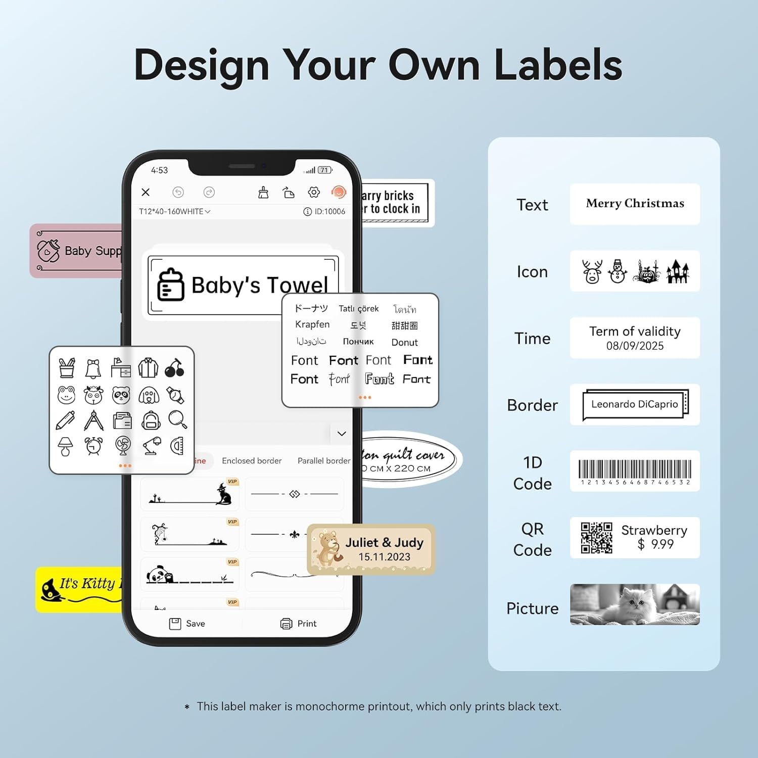 DEEPIN Label Maker Machine Portable Bluetooth Label Maker with Tape, Thermal Label Printer Multiple Templates for Phone, Mini Label Sticker Printer for Business Office Organization (White)