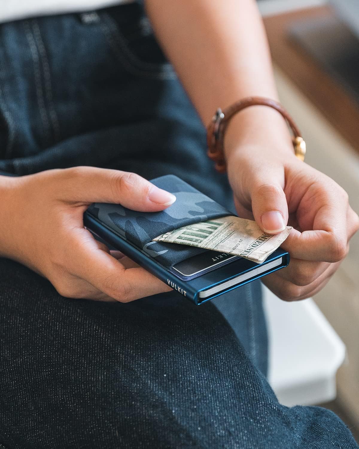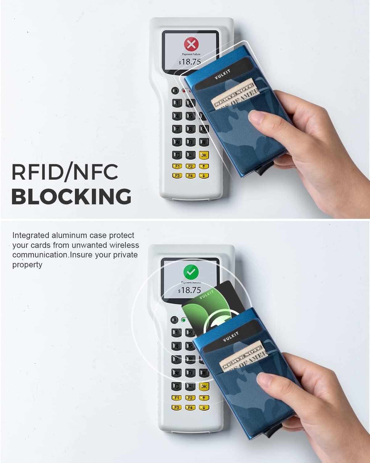 VULKIT Card Holder with Money Pocket Pop Up Wallet RFID Blocking Slim Metal Bank Card Case Holds 5 Cards and Notes