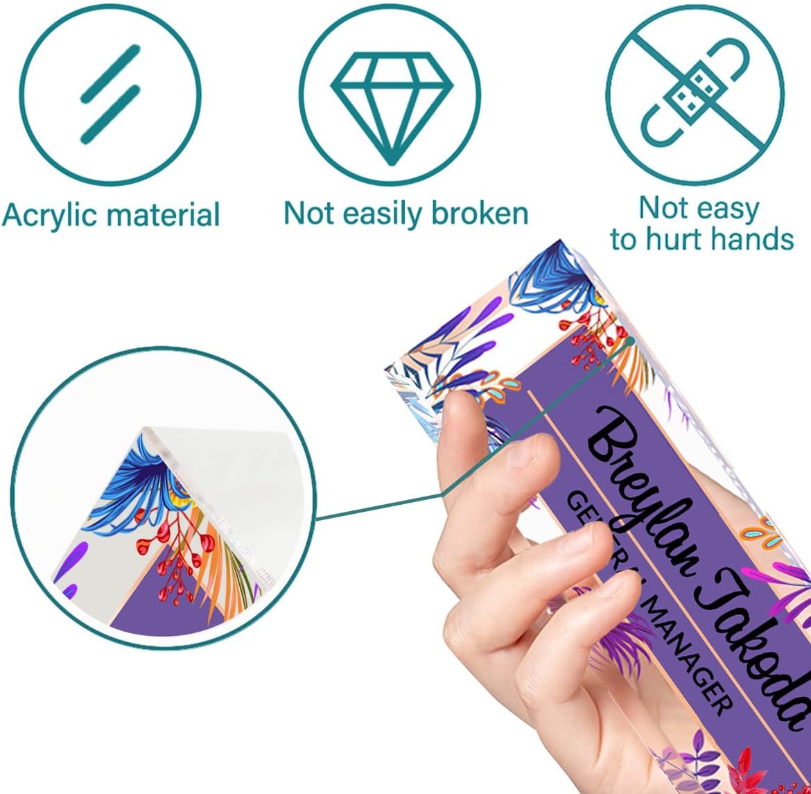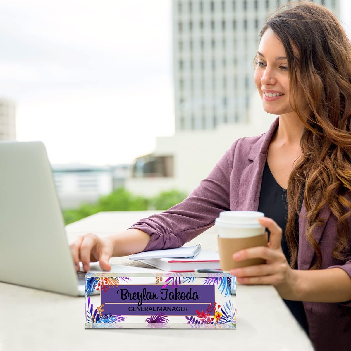Office Desk Name Plate Personalized | for Custom Plates Desks| Decor Women Acrylic Decorations(Tropical Plants)