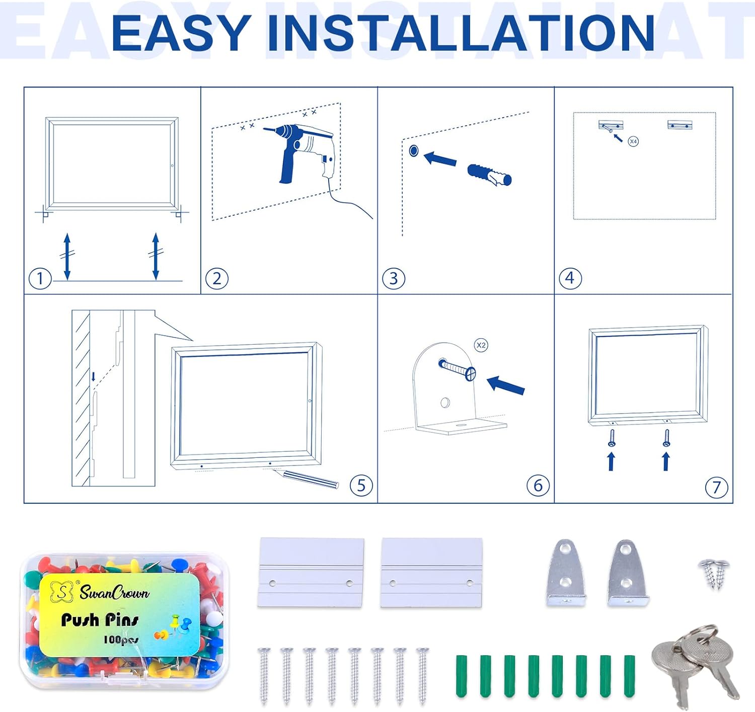 - 🔑SAFE DISPLAY —The clear and shatter-resistant windows allow plenty of visibility on high traffic or public. It's convenient to post and update notice documents under the protection of lockable doors and key mechanisms (Come with 2 keys). Lockable acrylic doors keep information safe from theft and vandalism.