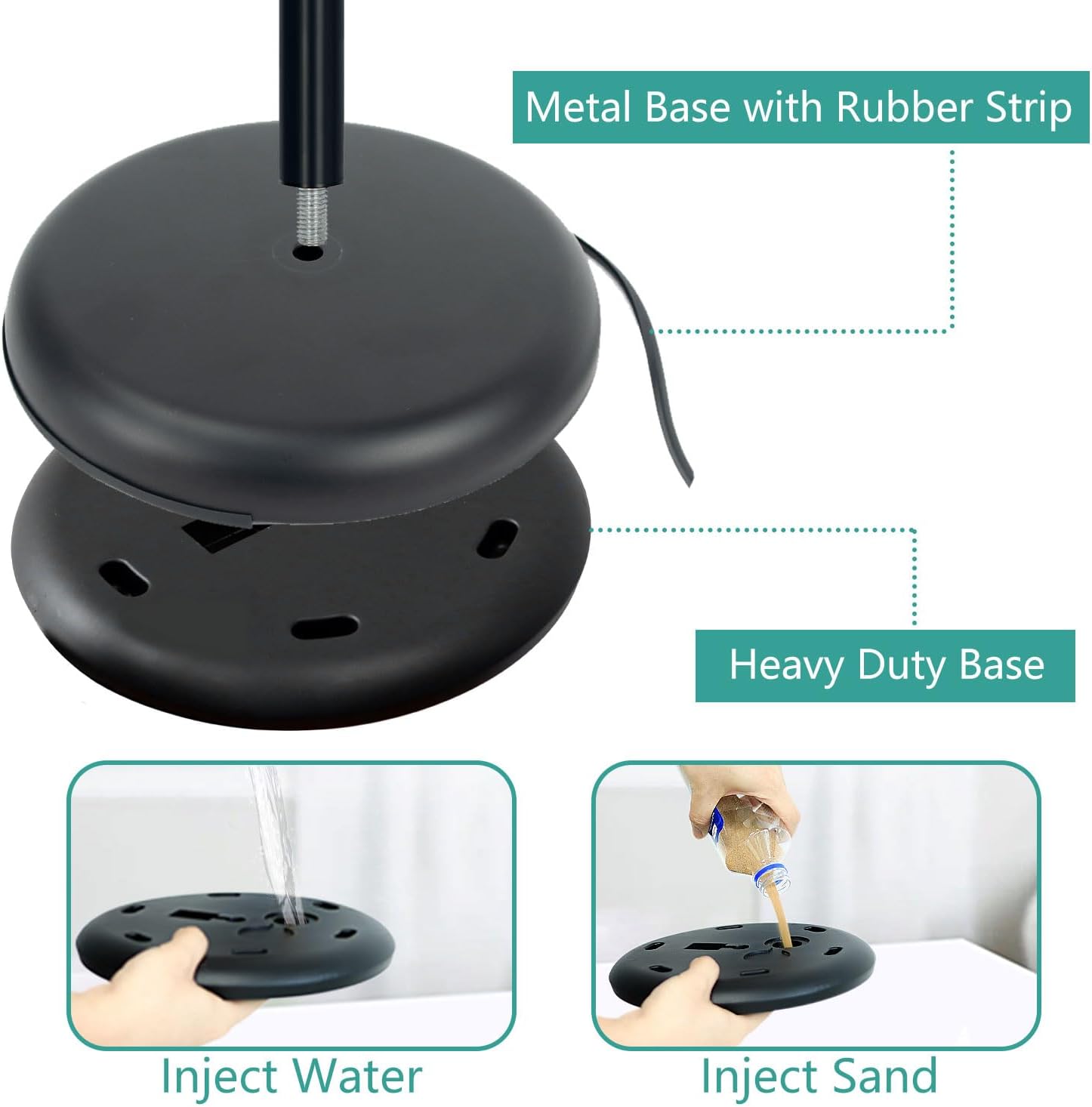 - Heavy Duty Stable Base: The adjustable sign holder stand features a thickened base. For added stability, you can fill the base with water or sand to resist strong winds. It also includes a non-slip mat to protect floors from scratches