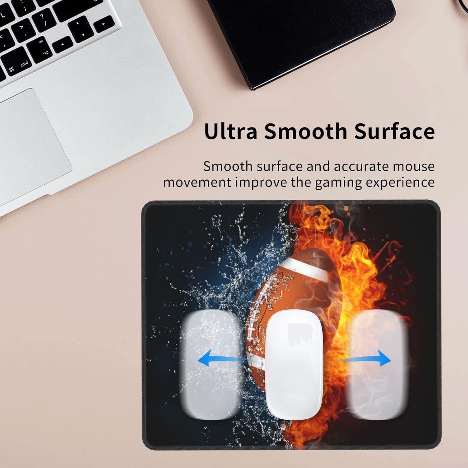 Football Mouse Pad Boys Men Teens Gamer Cool Desk Mat with Water Fire Printed, Sports Mousepad for Gaming/Home/Office, Non-Slip Rubber Mouse Mat with Stitched Edges for Desktop, 12 x 10 inch