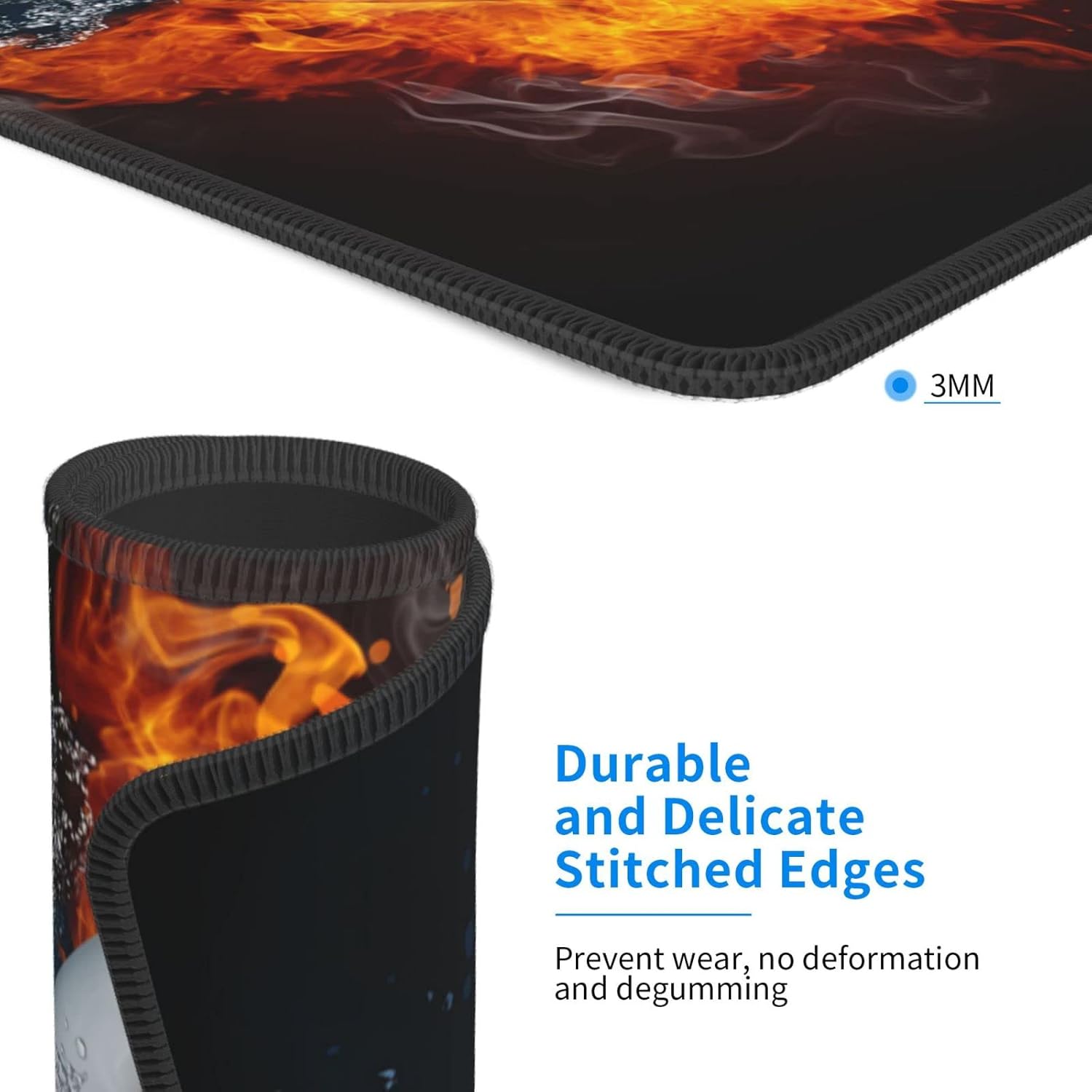 Boys Gaming Mouse Pad with Hockey Ball Fire Water Pattern, Large 12 x 10 inch Mouse Pads with Stitched Edge for Home Office Computer Laptop Non-Slip Rubber Base Desk Mat for Wireless Mouse