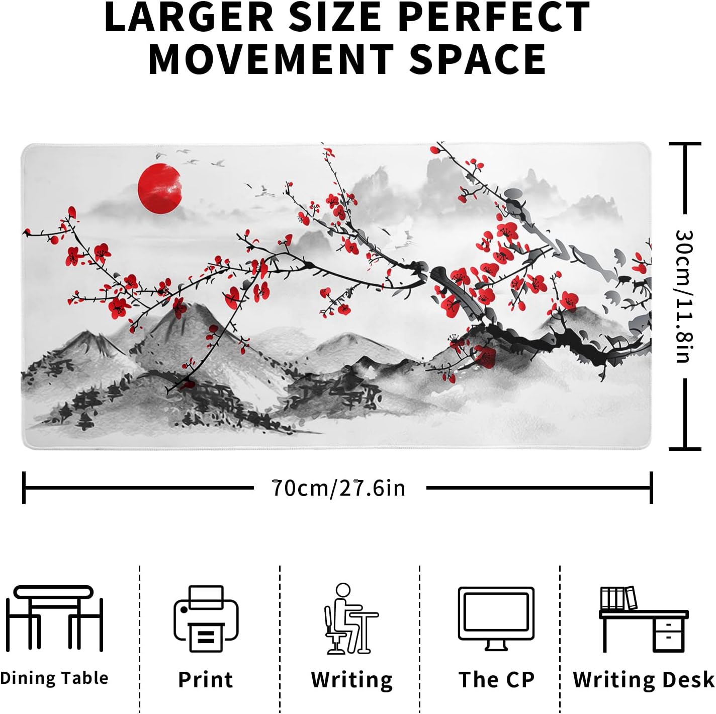 - ā„[Extended Mouse Pad Size]:The extended Cherry Blossom desk pad measures 27.6x11.8x0.12 inches that covers most of the desk. Offers a wide area to have your laptop, mouse and keyboard. You can freely move your mouse without any interruption and don't have to continually adjust the mat as you do with traditional mousepads.