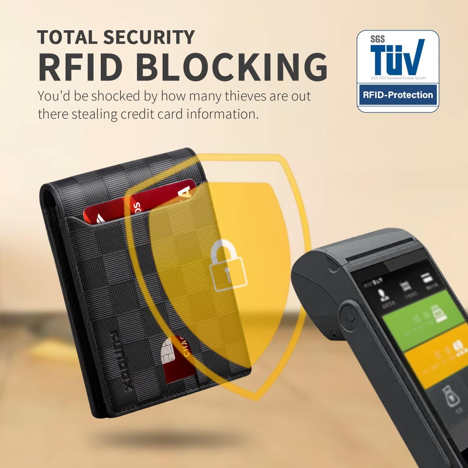 - RFID Blocking - This wallet for men are designed by German designer, made of genuine leather material, durable, wear- resistant and scratch-resistant. Our wallets block the 13.56 MHz band and protect against data theft by RFID scanners