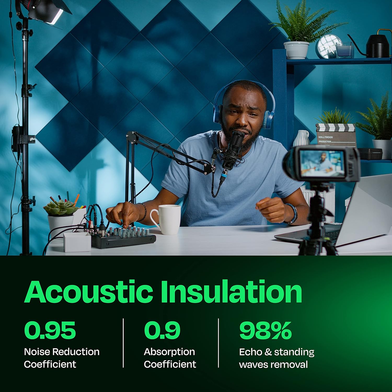 - 【HIGH DENSITY ACOUSTIC PANELS】: Improve sound quality and reduce echoes & reverb at your home, office, podcast studio, conference room and more. Give your space what it's been asking for, with our beautiful sound absorbing panels and keep unwanted noises down to a minimum.