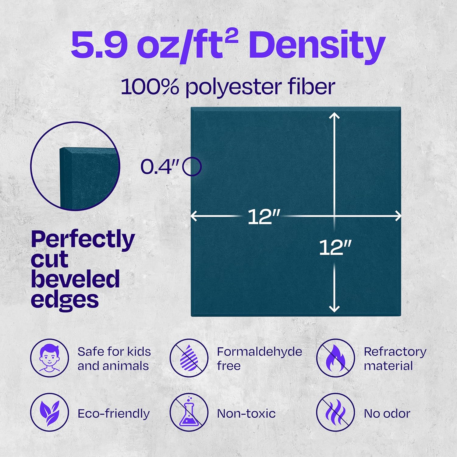 Acoustic Panels 12-Pack Soundproof Wall Panels 12"X12"X0.4" Sound Panels High Density Sound Dampening Panels - [Ocean Turquoise Square]