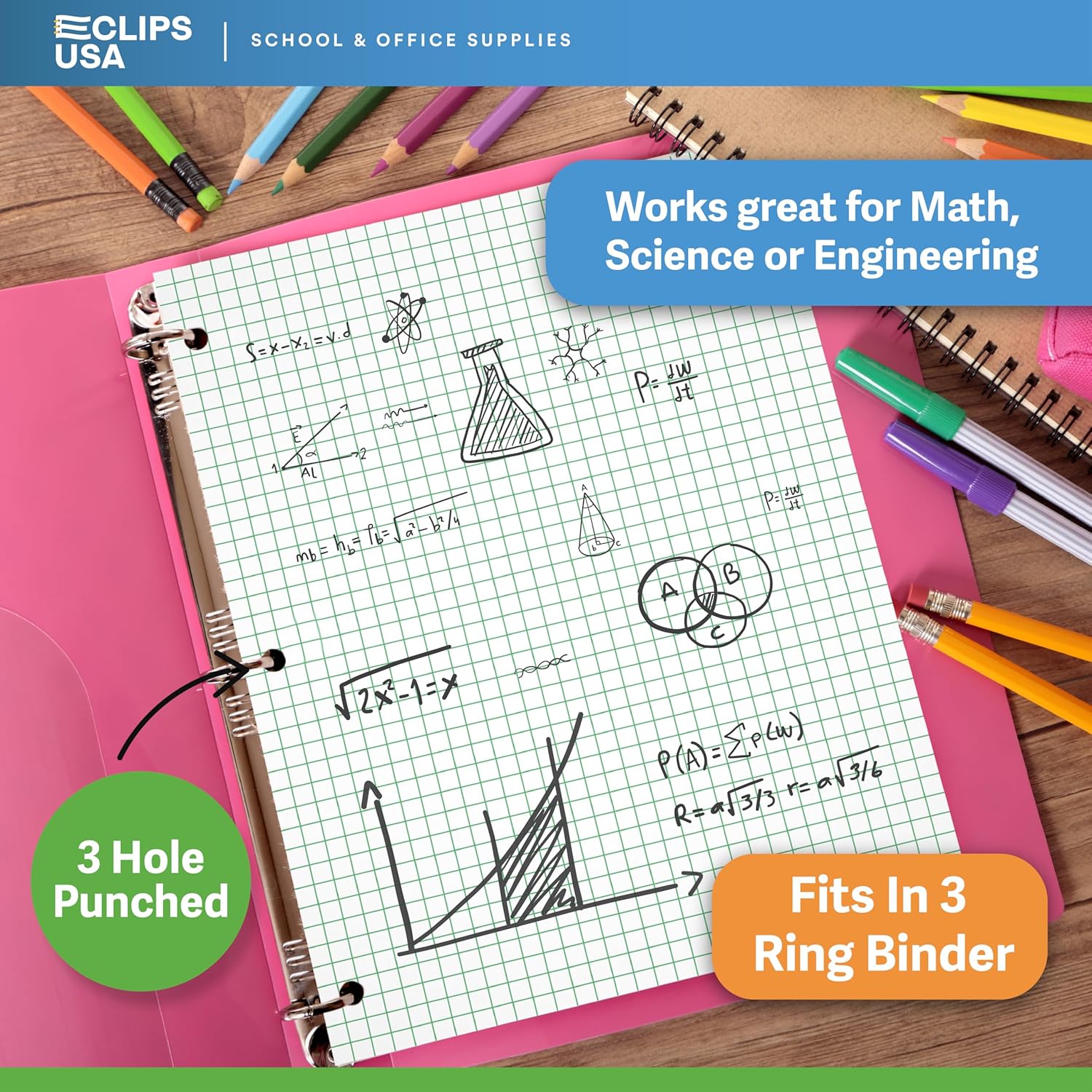 - FITS IN 3 RING BINDERS - Graph paper sheets fit most 3 ring binders. Strong and durable to prevent tearing.