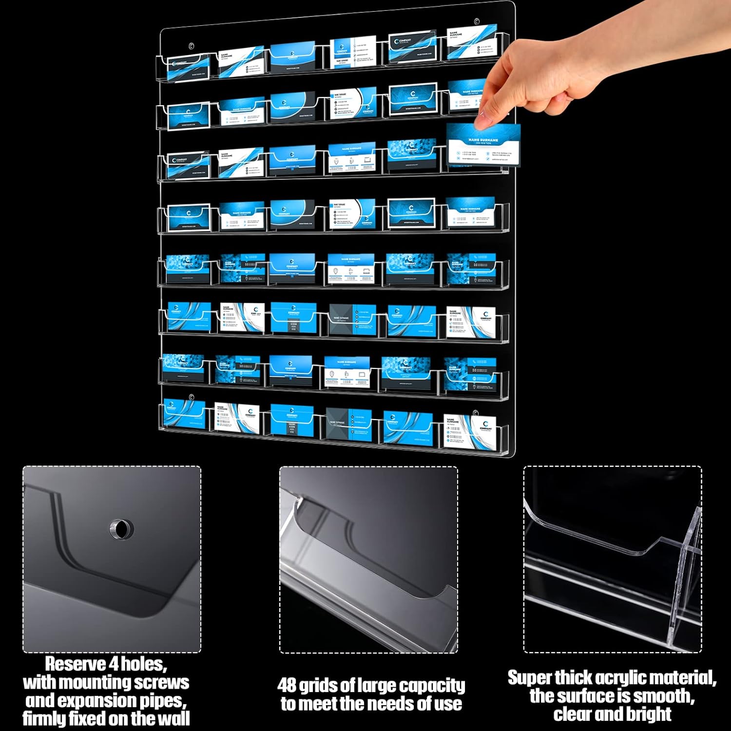 Hillban Acrylic Business Card Holder Wall Mount Clear Sticker Display Rack Multiple Card Holders Clear Acrylic Organizing Sticker Display Stand Pre Drilled(48 Pockets)