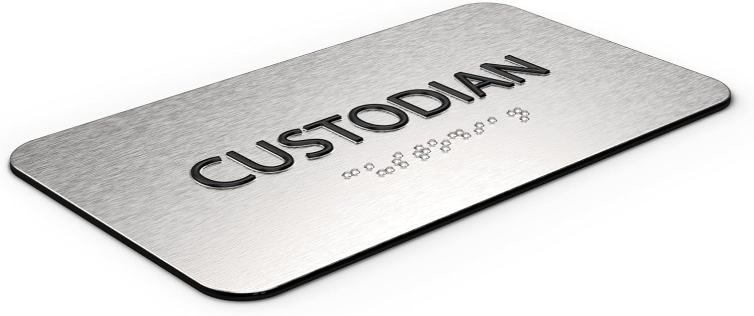 - šš®š«ššš„š šš§š ššš¦š©šš« šš«šØšØš: Built to last, our custodian supplies sign for keeping supplies is made from brushed aluminum and is resistant to wear, fading, and tampering. The raised tactile & Grade 2 Braille ensures longevity and compliance, while the durable construction stands up to frequent use in demanding environments.