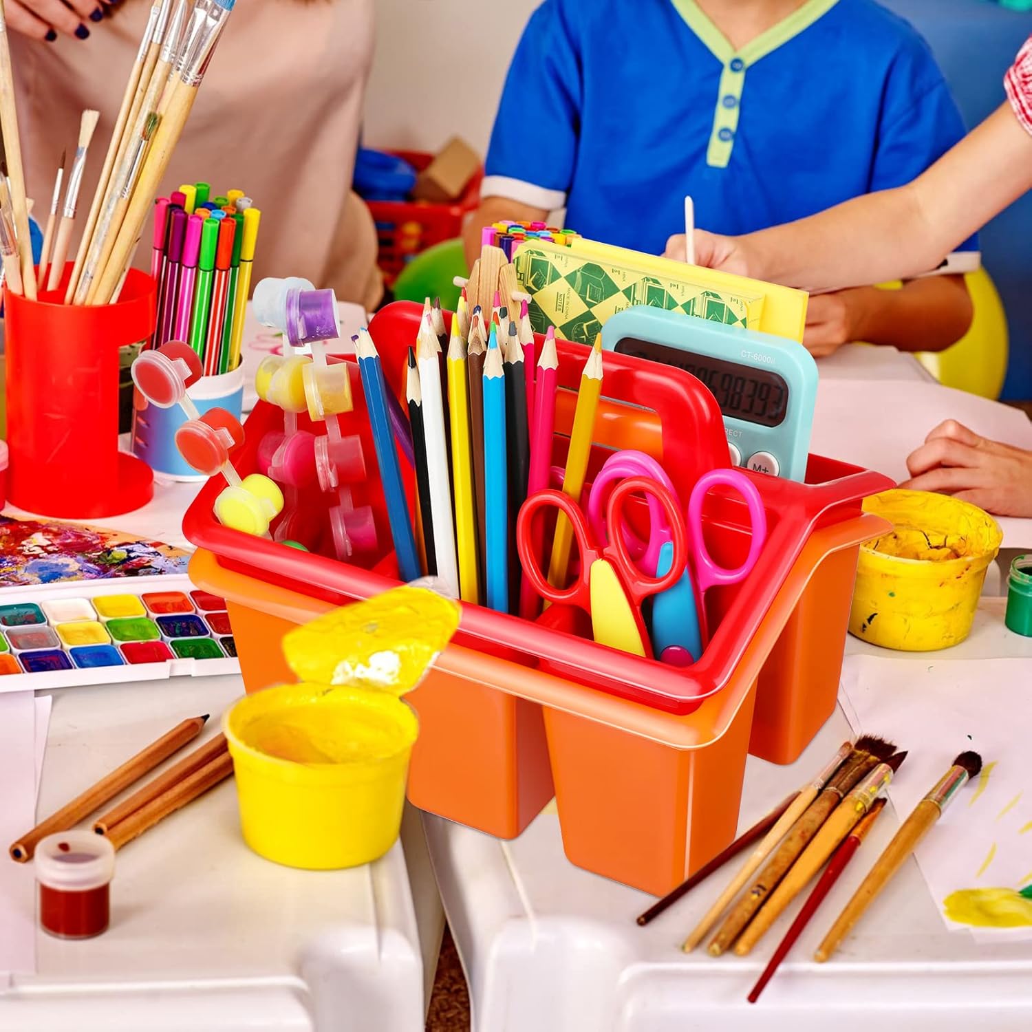 - Package Quantity: you will receive 12 pieces of multicolored storage caddies bulk with handle in different colors; Each storage caddy has 4 separate compartment inside, they can store kids' drawing tools, pencils, glue sticks; The compartment design will make your items look very neat and simple