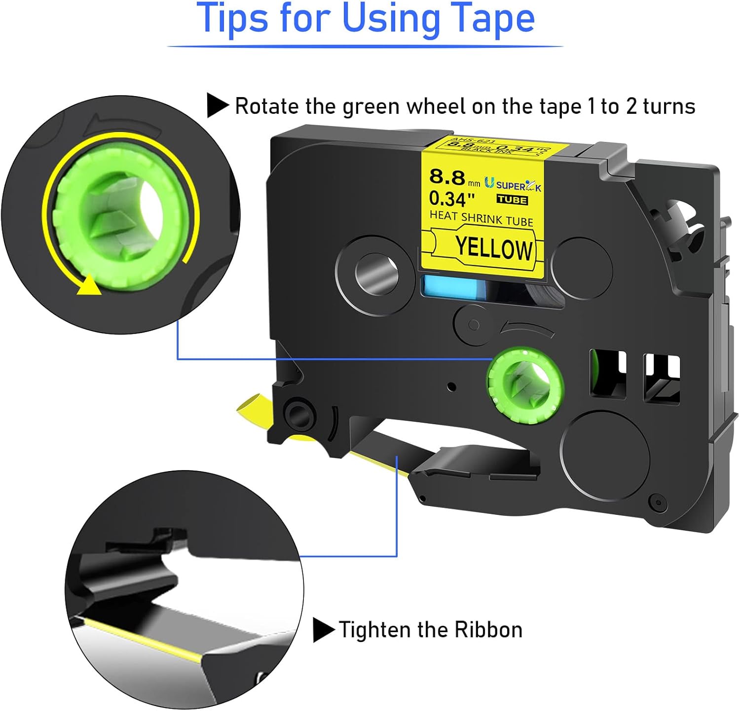 - USUPERINK Alternative Replacement Compatible for Ptouch HSe-621 HS-621 HSe621 HS621 AHS-621 Preminum Heat-shrink Tube Label Maker Tape