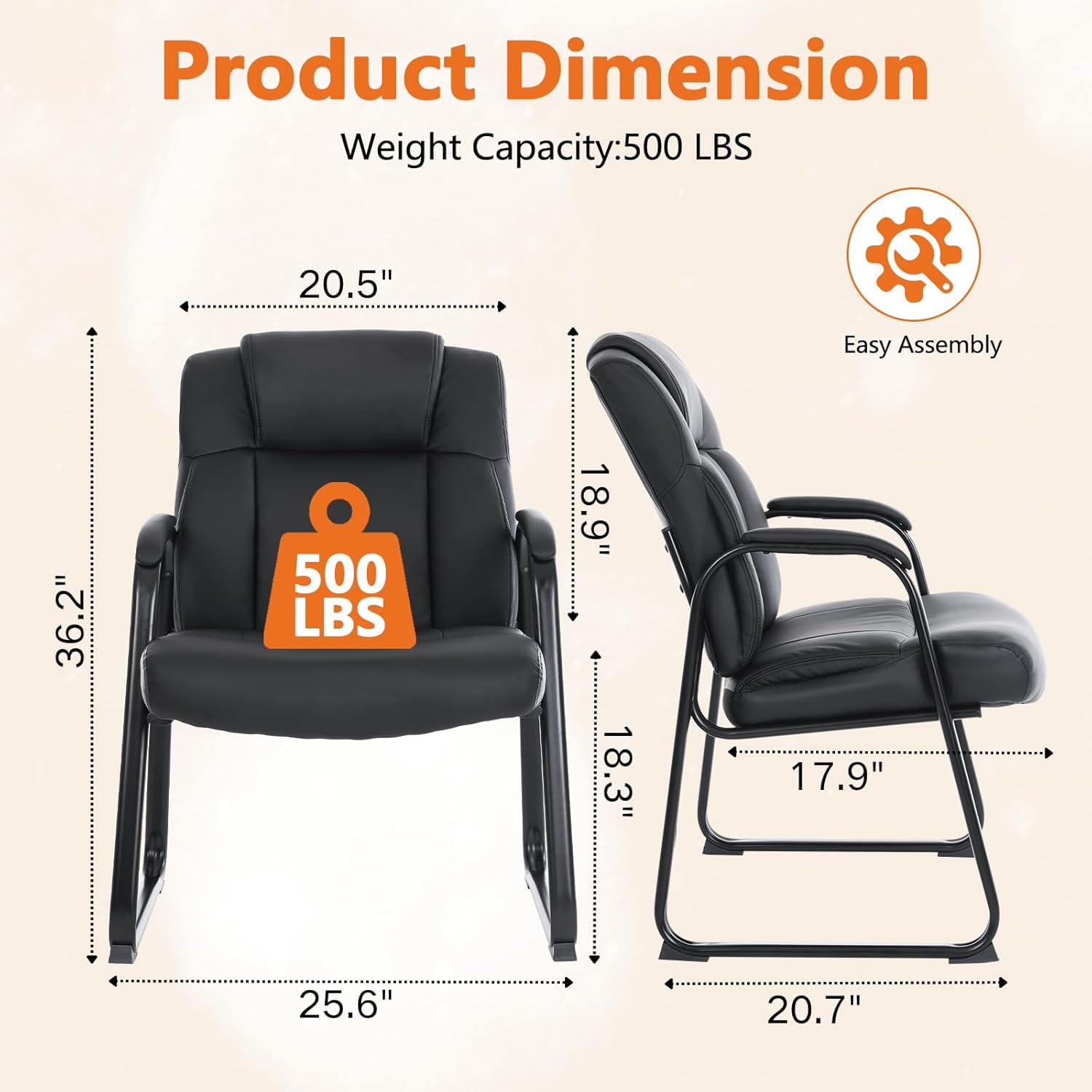 CLATINA Big & Tall 500 lb. Guest Chair, Leather Reception Chairs with Sled Base and Padded Arm Rest for Waiting Room Office Home and Meeting Conference-Black (2 Pack)