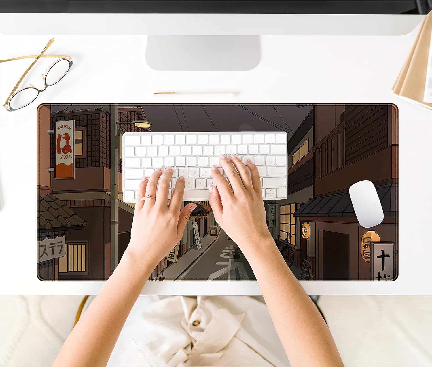 Tokyo Street at Night Kawaii Japanese XL Mouse Pad, Cute Gaming Desk Pads, Anime Large Desktop Mat, XXL Keyboard Mats, Extended Laptop Mat 31.5''X15.7''