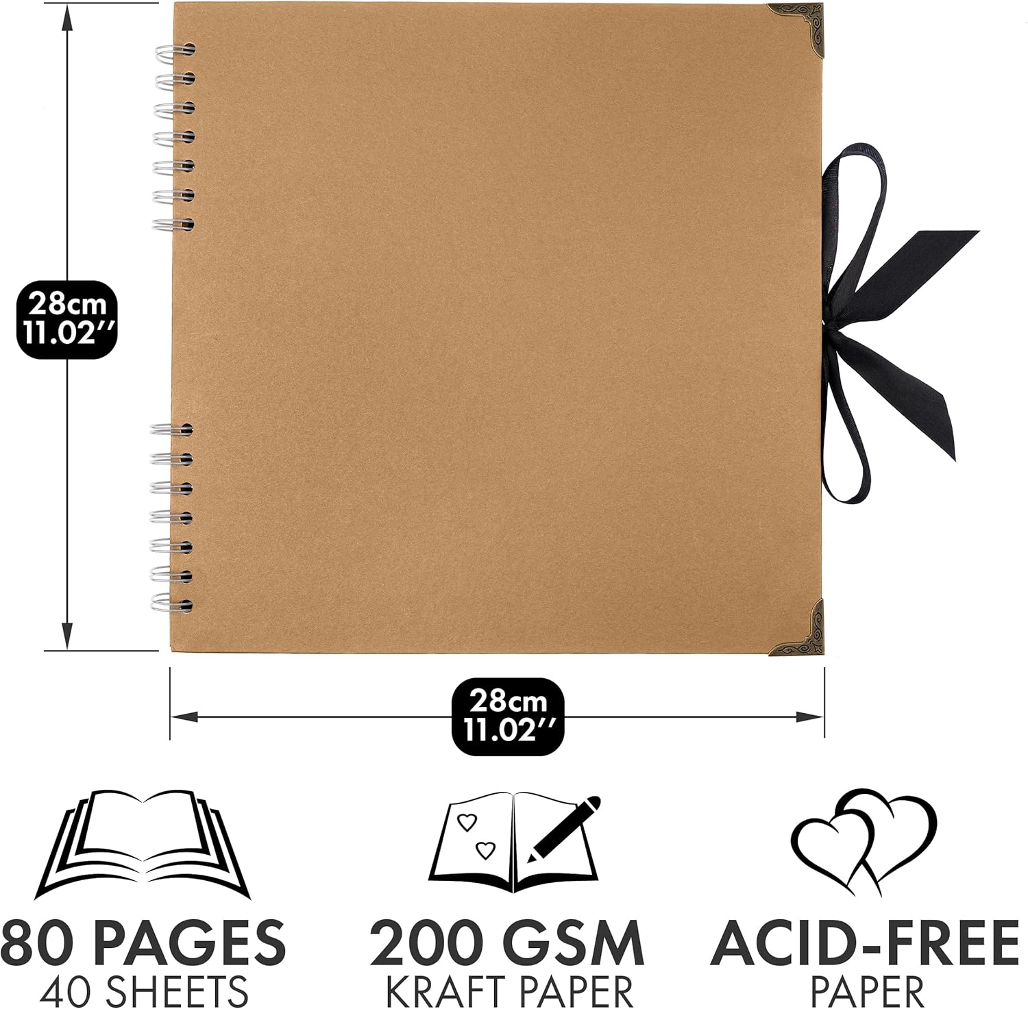 - This 11 x 11 inch scrapbooks is durable and suitable for long term storage for you and your loved ones beautiful memories. It has 40 sheets, 80 pages of 200gsm high quality thick Kraft paper, designed with ribbon closure, hard cover and corner protectors