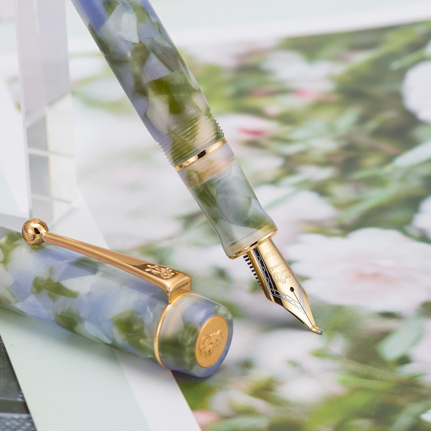 Jinhao 100 Fountain Pen Celluloid Classic Style, #6 Nib Smooth Writing Instrument with Refillable Converter and Pen Case Set
