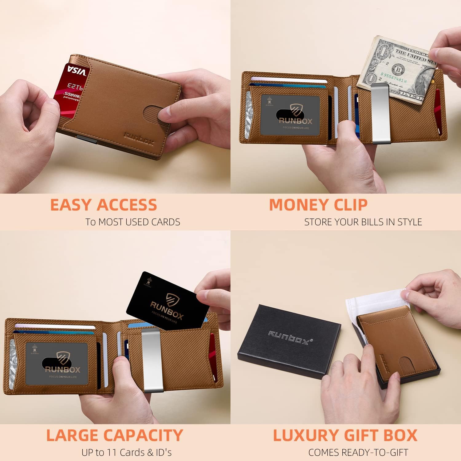 RUNBOX Slim Wallets for Men - Leather Money Clip Mens Wallet - RFID Blocking Front Pocket Bifold Wallet - Thin Credit Card Holder with Gift Box