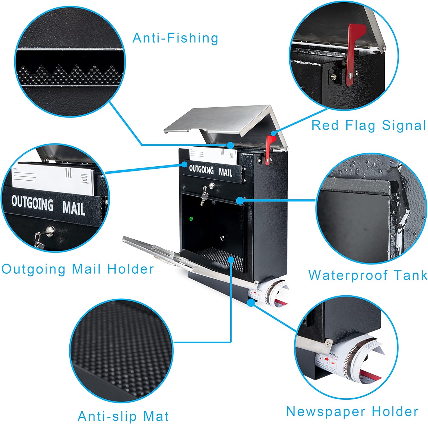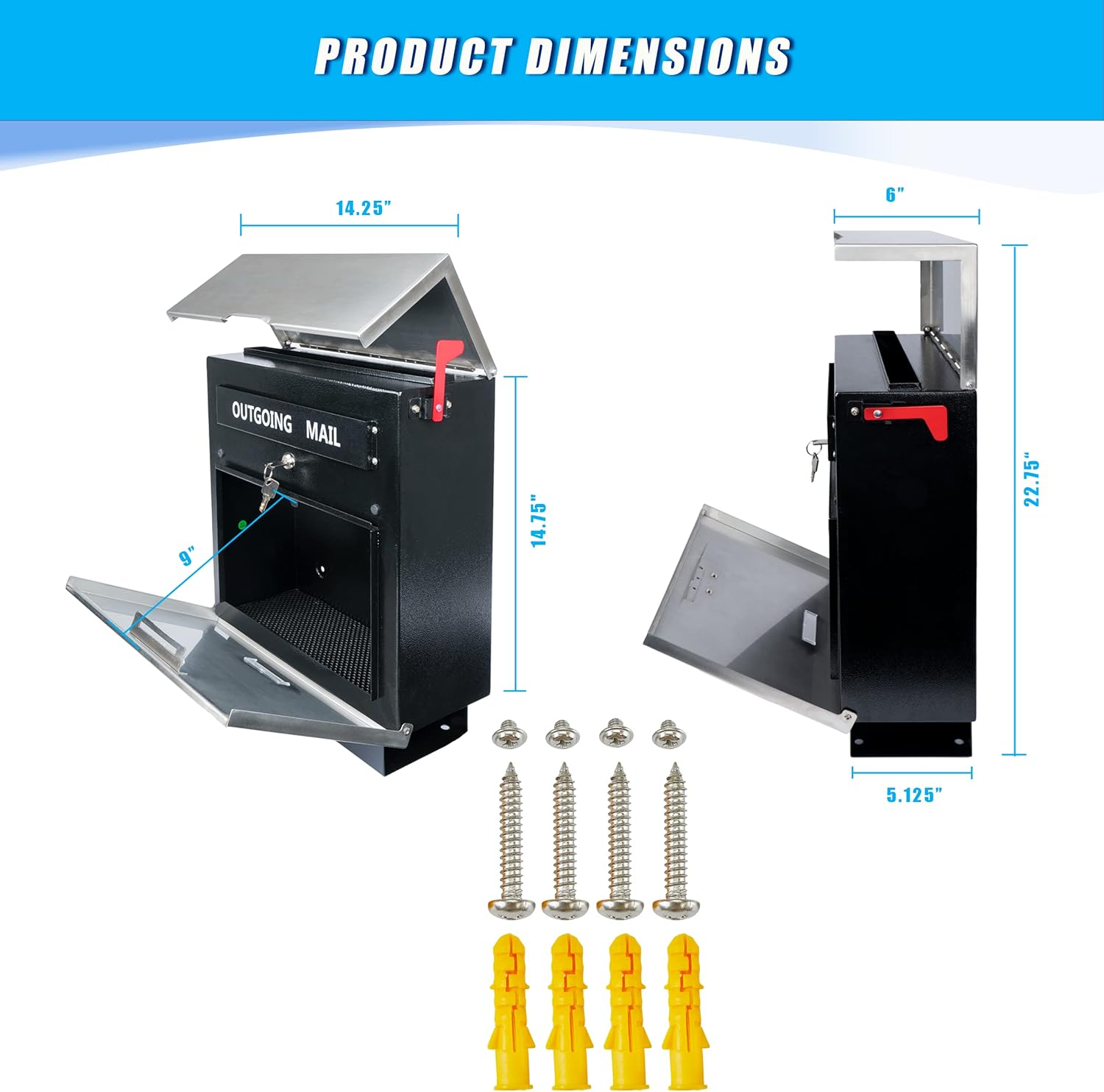 - RUST RESISTANT STAINLESS MAILBOX: Our wall mounted mail box is made of 1.1mm heavy duty steel, making this architectural mailbox rust resistant and long lasting for your home and business.