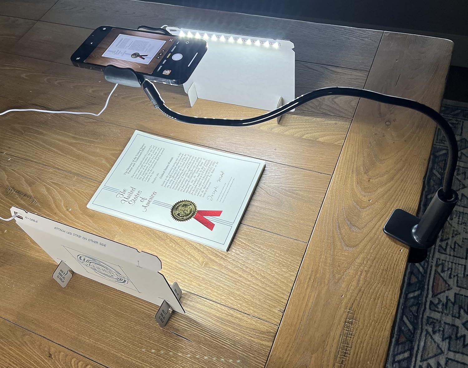 Dual Light Stands for scanning documents, Photos, Products, Albums, textbooks, and Receipts with Balanced Illumination