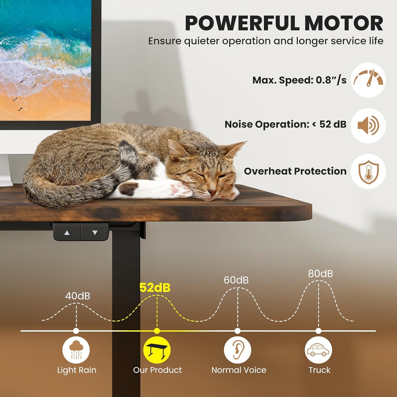 - High Quality Mechanics: This electric adjustable standing desk features an advanced motor that ensures a longer service life. The strong double beams give this liftable desk a more stable structure. In addition, this high-quality mechanical structure can withstand up to 200 pounds even during lifting.