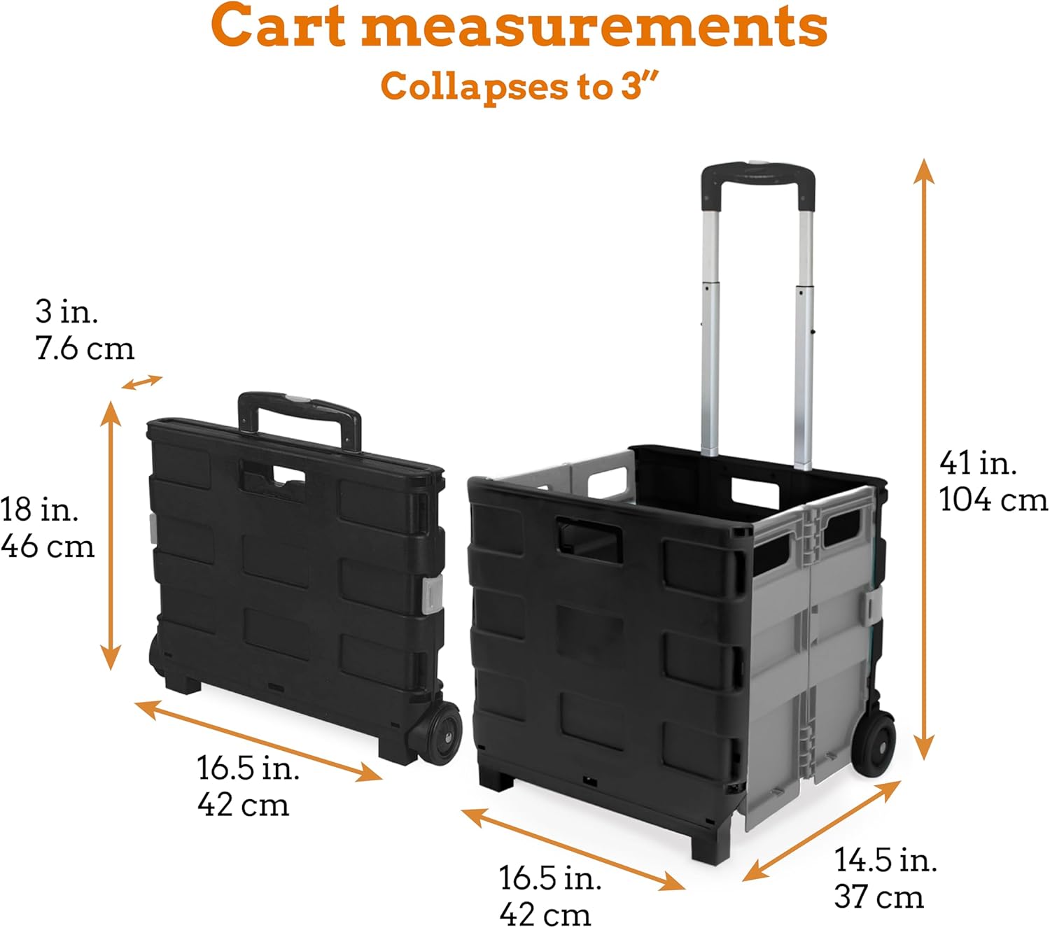 - HIGH CAPACITY UTILITY CART: Heavy Duty Construction- Holds Up To 80 Lbs: Collapses To 3" When Folded Flat / 16.5" When Fully Expanded