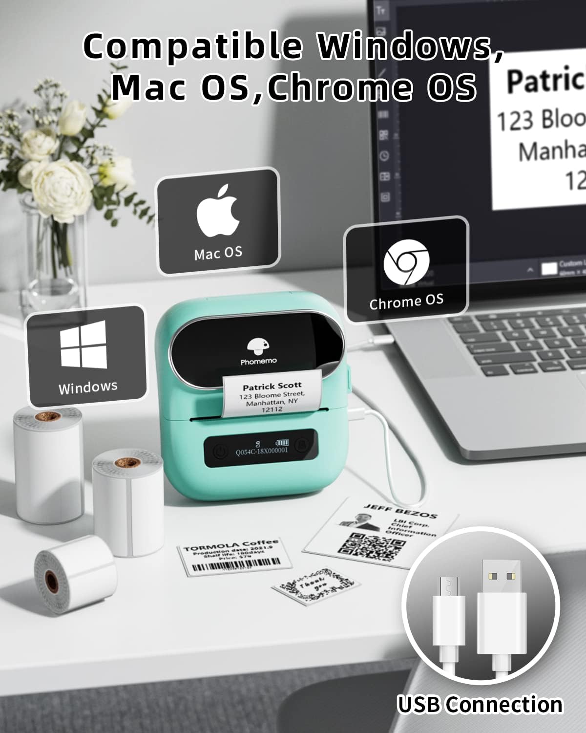 - High Compatibility - The Phomemo M220 label maker machine boasts excellent compatibility. It supports Bluetooth wireless connectivity to smartphones and tablets and USB wired connectivity to PCs (Windows, macOS, and Chrome, but not Linux).