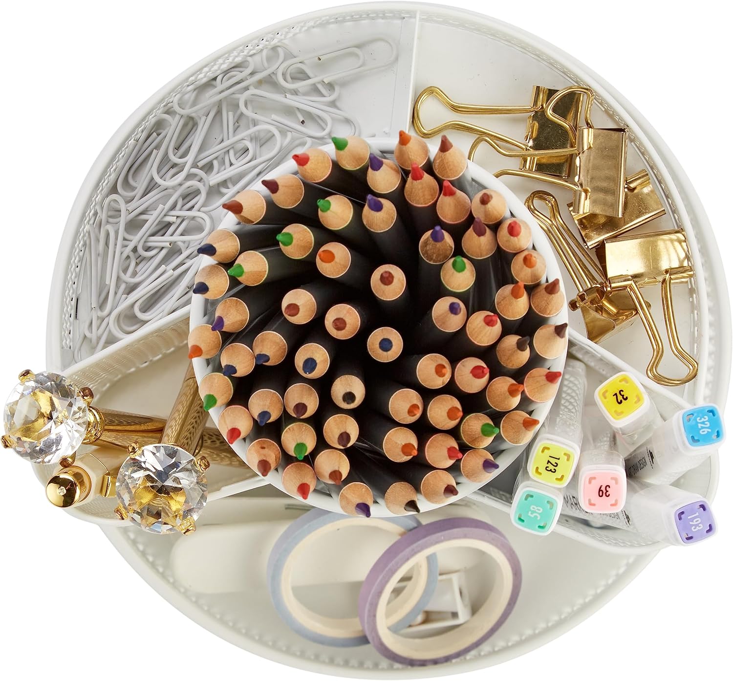 Annova Mesh Desk Organizer Rotate with 6 Compartments Round Spinning Tidy Candy/Pen Holder Desk Accessories Office, Art Supply, Storage, Classroom, Home (White)