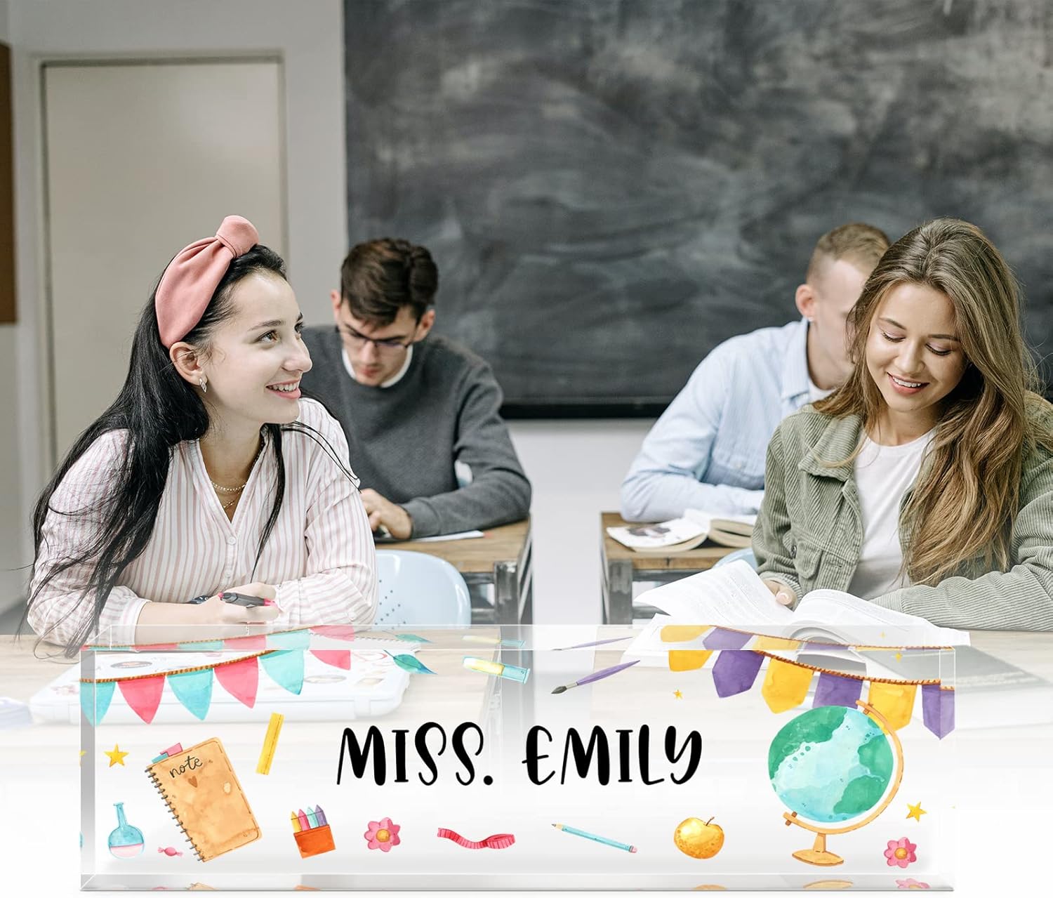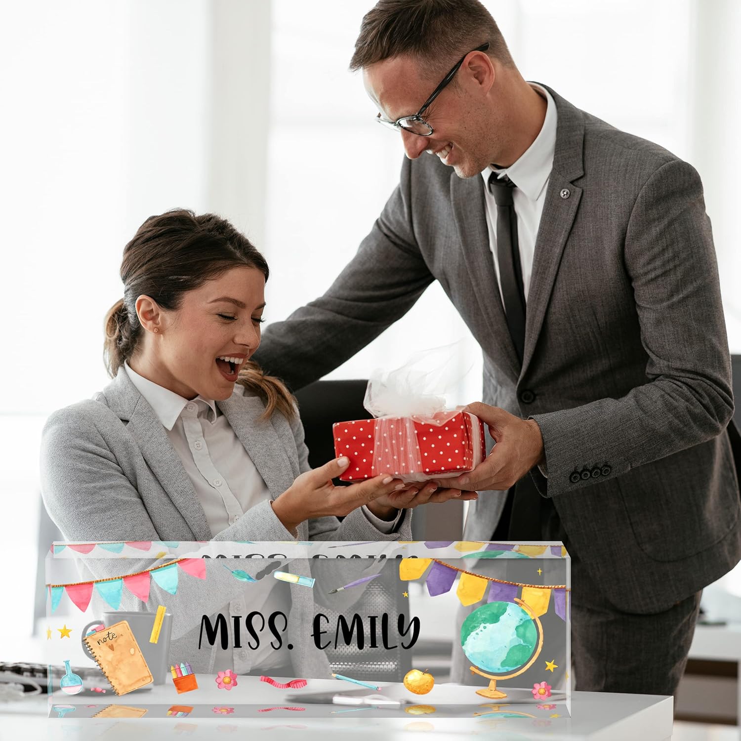 Gowelly Office Acrylic Teacher Name Plate for Desk |Desk Name Plate Personalized| Custom Teacher Appreciation Gifts in Bulk |Office Teacher Supplies Gifts for Women|Gifts for Teachers
