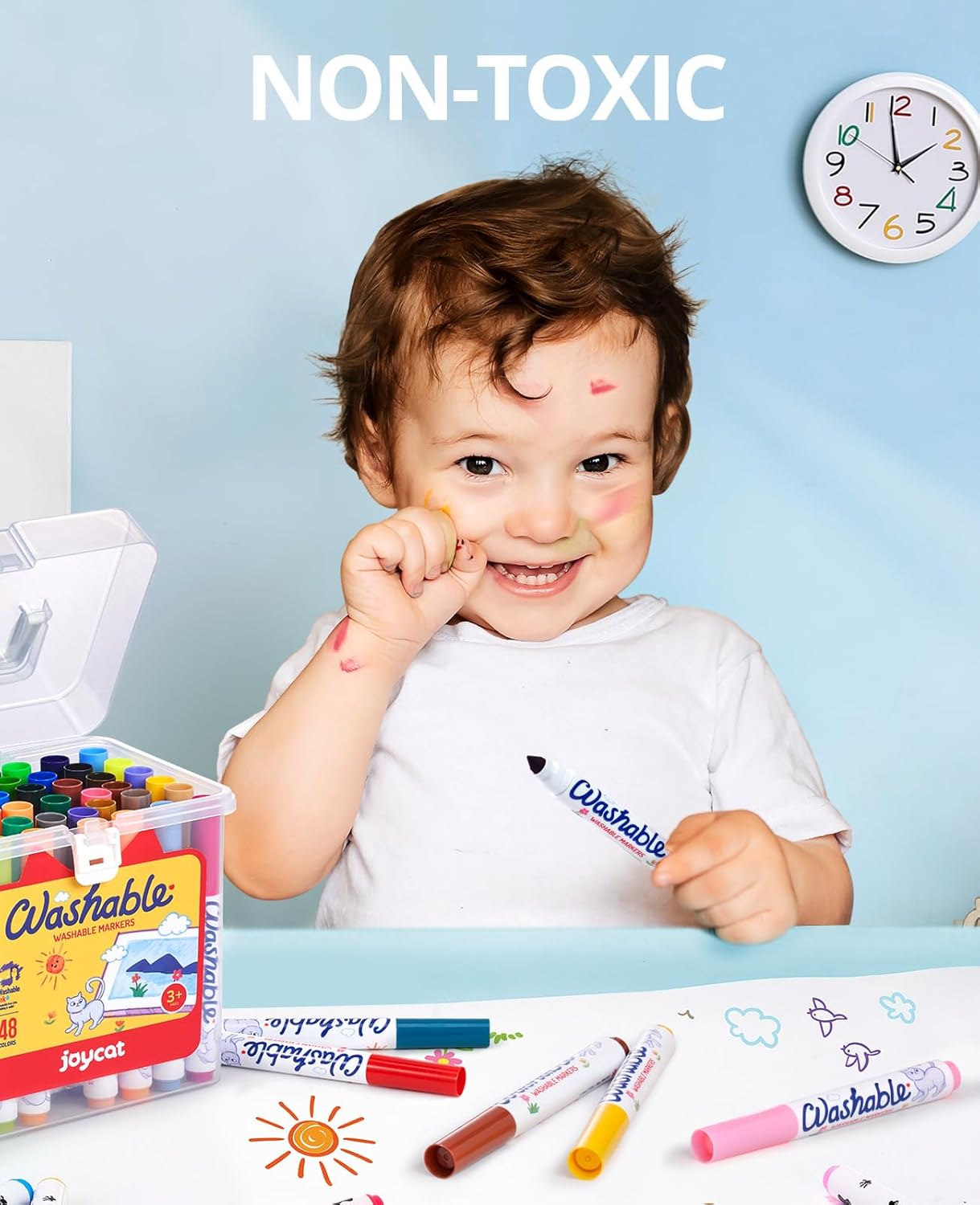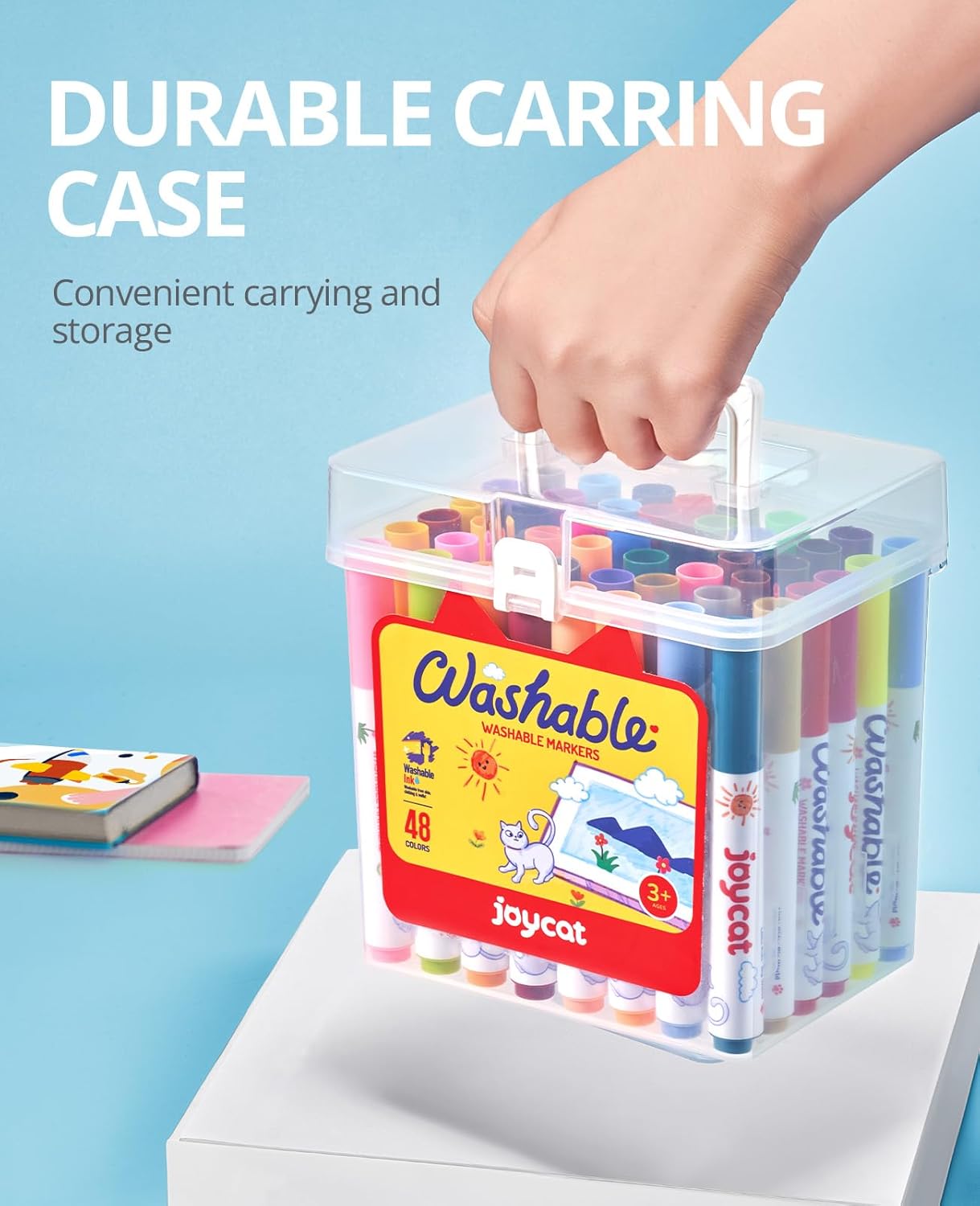 JoyCat 48 Count Washable Markers for Kids, 48 Colors Washable Markers Set with Carrying and Storage Case, Coloring Marker Bulk for Boys Girls, School Classroom Supplies