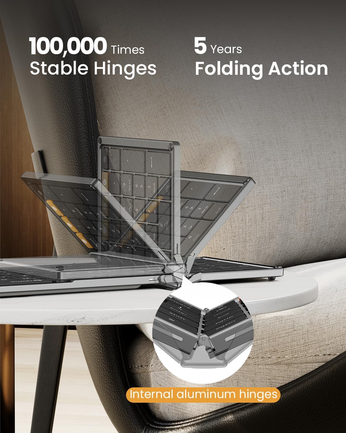 - Work Quietly Anywhere: Our foldable bluetooth keyboard features whisper-quiet scissor switches and low-profile keys, paired with a noise-reducing mouse to deliver library-level silence. Perfect for meetings, coffee shops, and flights - enhances focus by 50% without disturbing others
