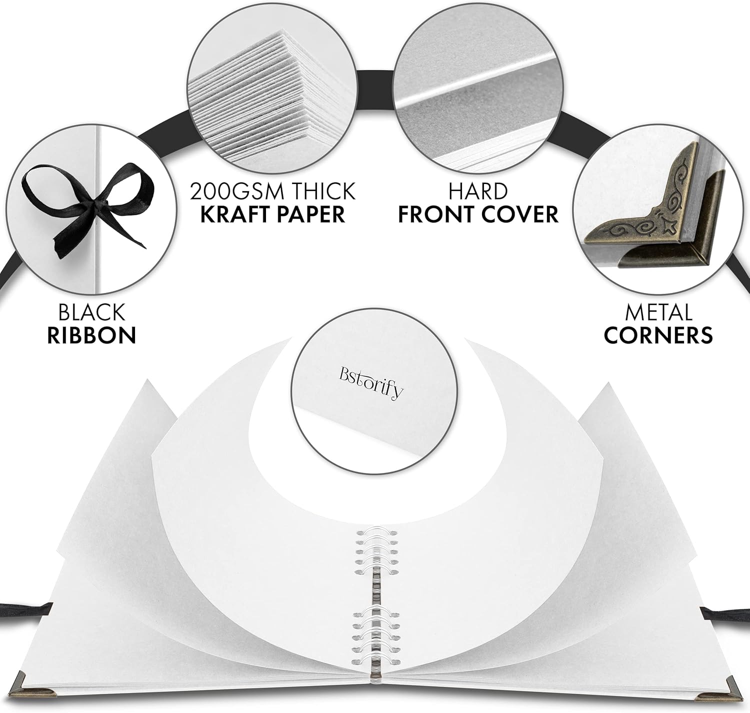 Bstorify Square Scrapbook Photo Albums 36 Pages (18 x 18 cm) White Thick Paper, Hardcover, Metal Corners, Ribbon Closure - Ideal for Your Scrapbooking Albums, Art & Craft Projects 7 x 7 Inch
