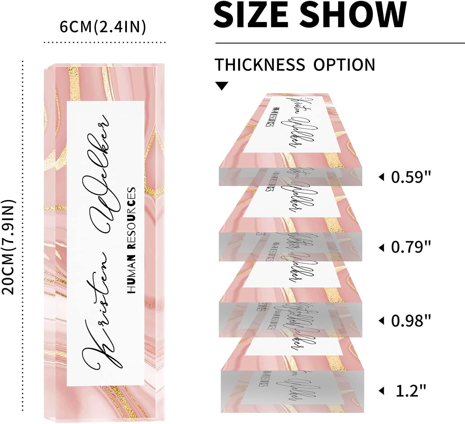 - HIGH QUALITY - The Personalized Name Sign Plates Are Made Of High Quality Crystal Clear Acrylic Blocks. This Office Nameplate Will Stand Out On Any Desk!We use high-tech UV printers to print on quality clear acrylics glass so you can visualise your memories.