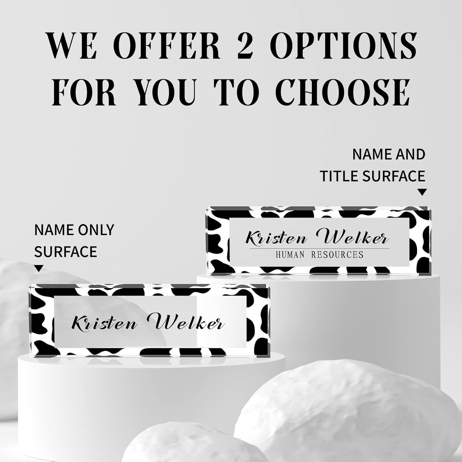 - HIGH QUALITY - The Personalized Name Sign Plates Are Made Of High Quality Crystal Clear Acrylic Blocks. This Office Nameplate Will Stand Out On Any Desk!We use high-tech UV printers to print on quality clear acrylics glass so you can visualise your memories.