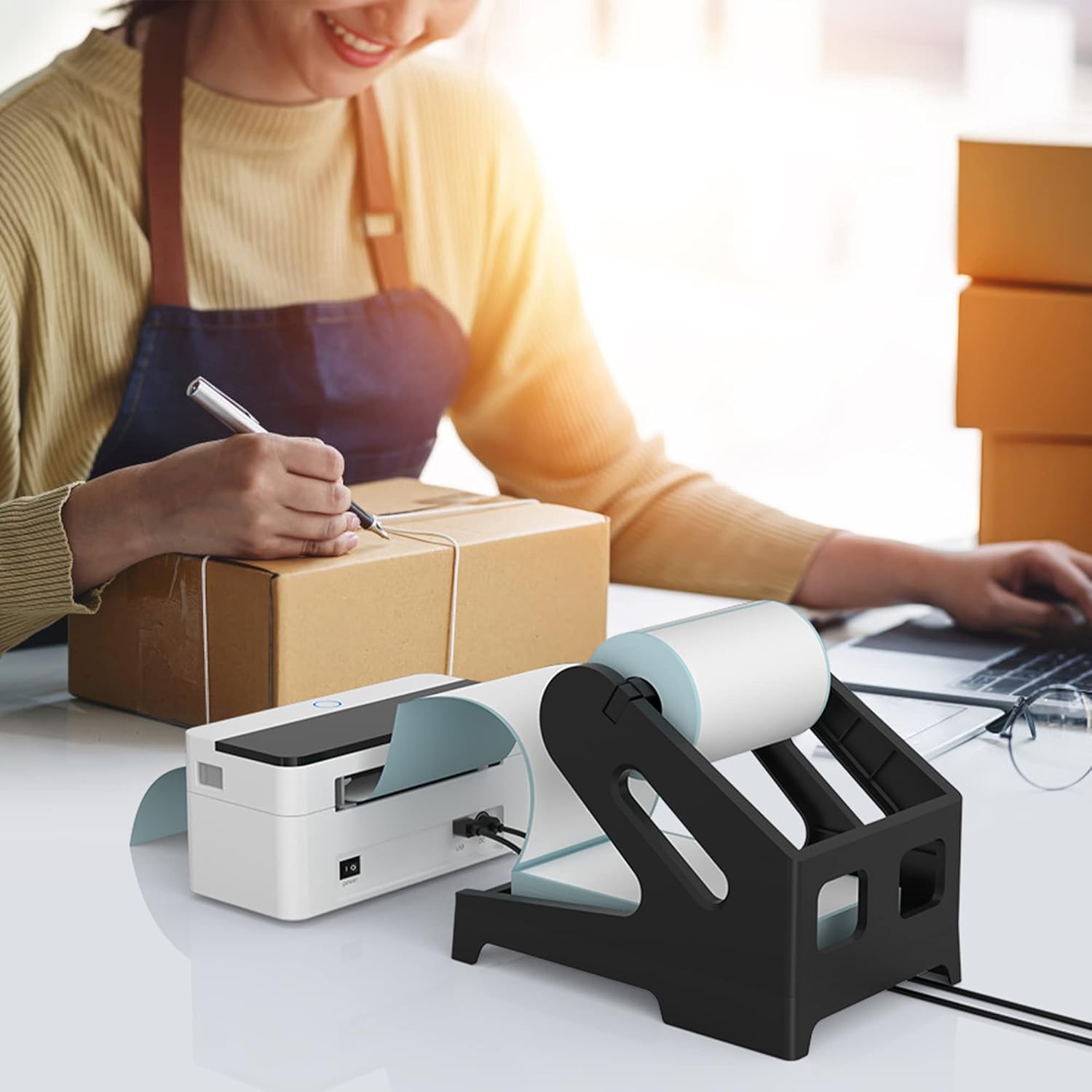 PONNOR Label Holder Thermal Label Holder for Rolls and Fanfold Labels Shipping Label Stand Desktop Printer Accessory Supplies for Home, Office (Black)