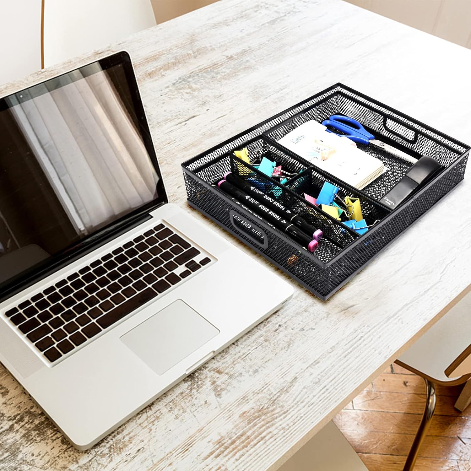 Office Drawer Organizer 3 Pack, Office Supplies Desk, Black Mesh Drawer Organizer Hold Pens & A4 Sized File, 12 x 9 Inches Visit the Store