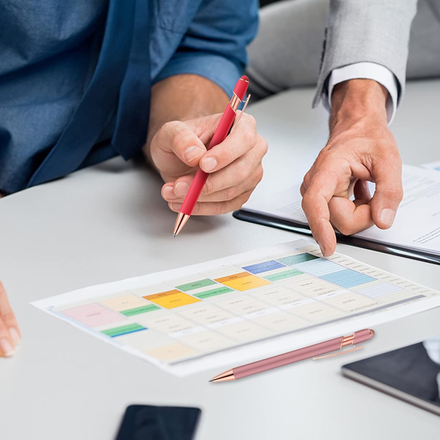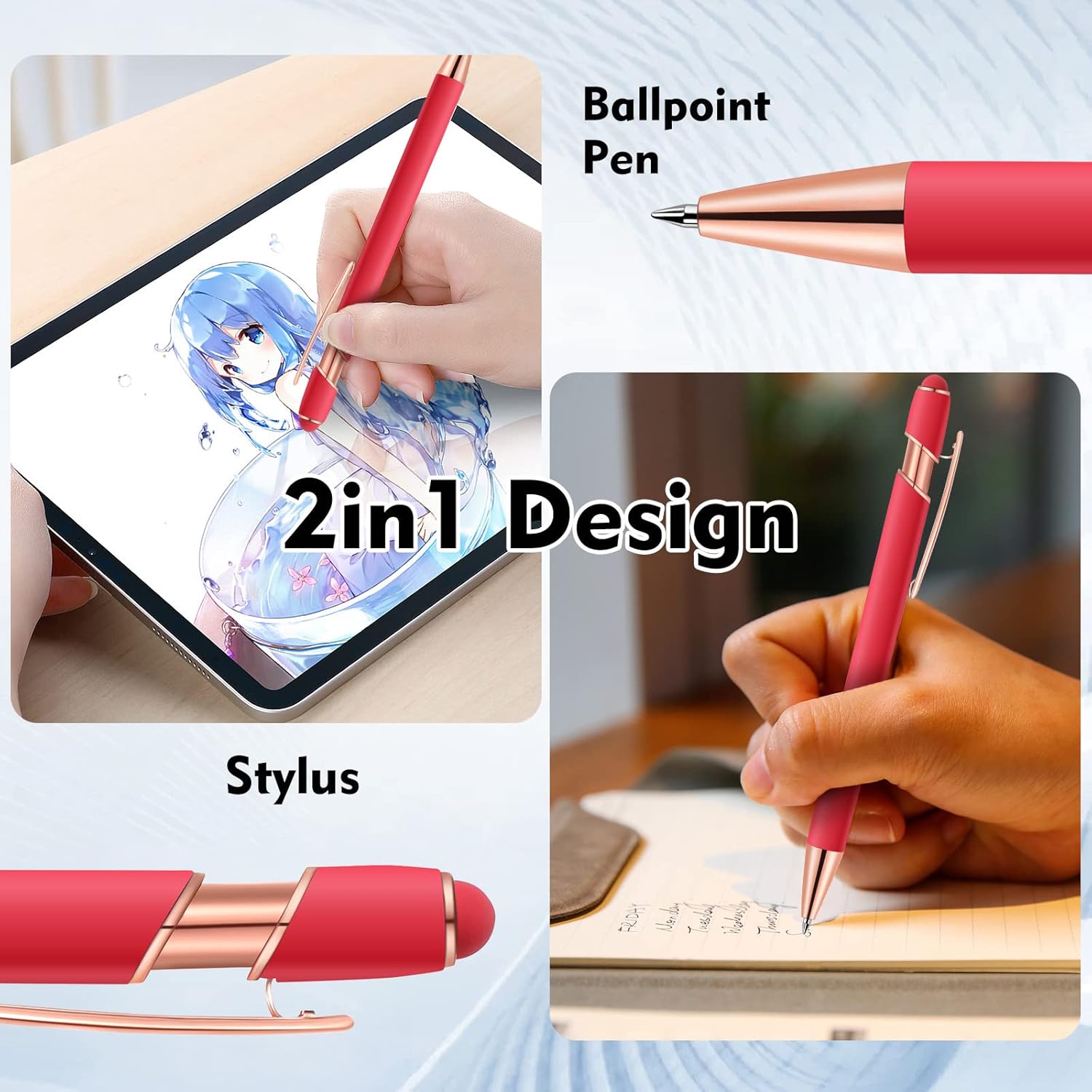 12 PCS 2 in 1 Stylus Ballpoint Pen with Stylus Tip, 1.0 mm Black Ink Metal Pen Stylus Pen for Touch Screens (All Red)