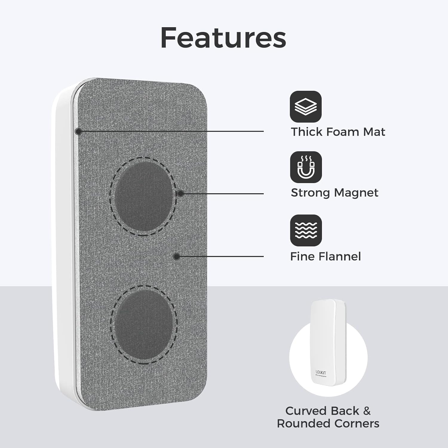 loukin 4 Pack Magnetic Dry Erase Eraser, Whiteboard Eraser, Glass Board Remover, 3.4 fl oz Whiteboard Cleaner * 2 Included, for Classroom, Home and Office Use (White)
